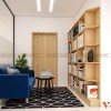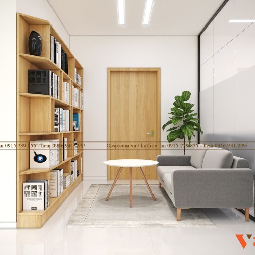 Không gian ngồi chờ, nghỉ là khu vực không thể thiếu đối với mỗi phòng khám. Với số lượng lớn bệnh nhân mỗi ngày, các bệnh viện không thể tránh khỏi tình trạng quá tải, bởi vậy, khu vực ngồi chờ là vô cùng cần thiết. Tại thiết kế phòng khám nha khoa của bệnh viện Trí Đức Thành, chúng tôi đã bố trí ghế sofa và bàn trà ở vị trí phù hợp dành cho khách hàng, bệnh nhân thăm khám. Được làm từ khung gỗ bọc đệm nỉ êm ái, sofa màu xanh dương tạo cảm giác dễ chịu và thoải mái cho khách hàng khi chờ đợi. Bên cạnh đó, giá sách được làm từ gỗ MDF chống ẩm cũng được chia thành nhiều ô vuông nhỏ để phân loại sách theo chủ đề được khoa học hơn.
