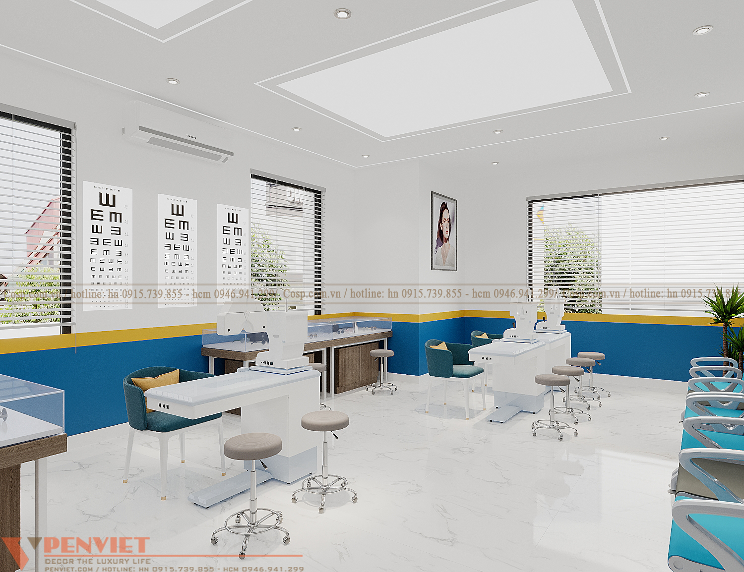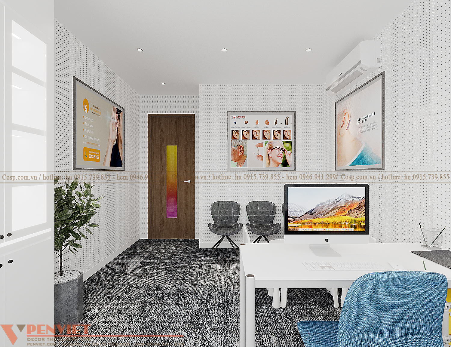 Thiết kế phòng đo thức được Penviet tư vấn bố trí hệ nội thất bao gồm: bàn làm việc cho bác sĩ, tủ để đồ, bàn ghế dành cho trẻ em.