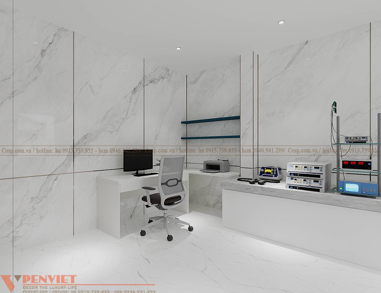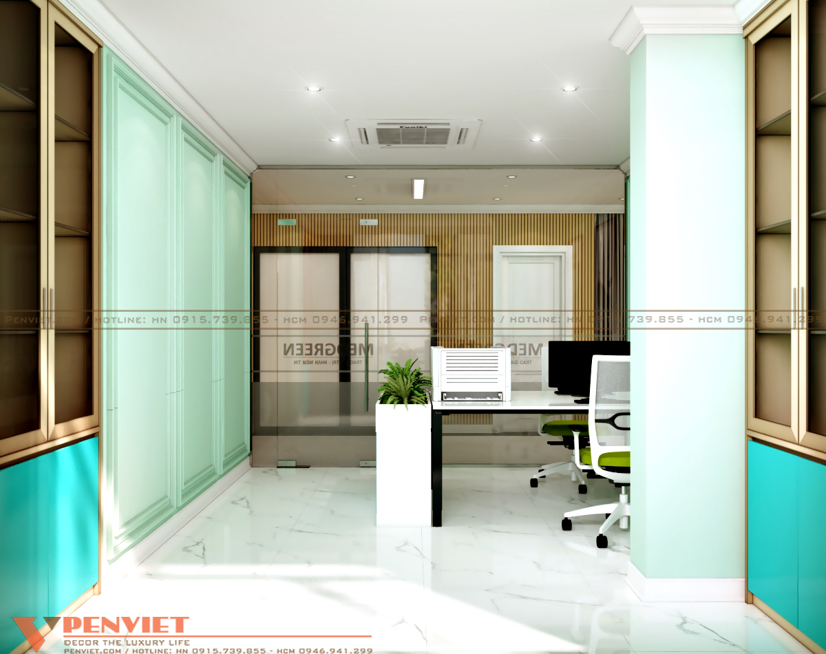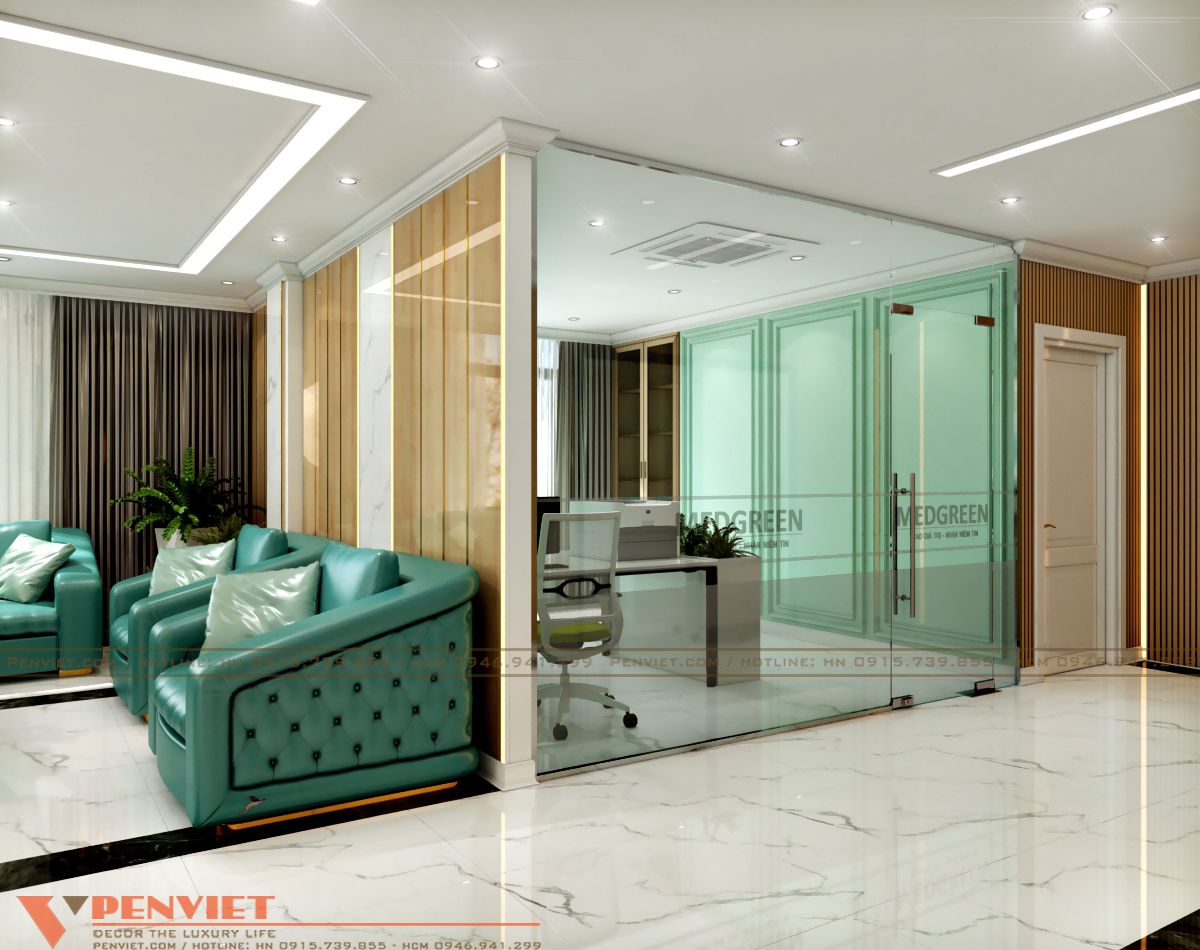 Tại phòng khám giáo sư tiến sỹ PenViet tư vấn setup làm khu vực phòng khám bằng cách thi công lắp đặt vách kính ngăn. Giải pháp này chẳng những mang tới sự riêng tư cần thiết cho bác sĩ trong quá trình làm việc mà còn tạo không gian mở, giúp đảm bảo sự rộng rãi, thông thoáng.
