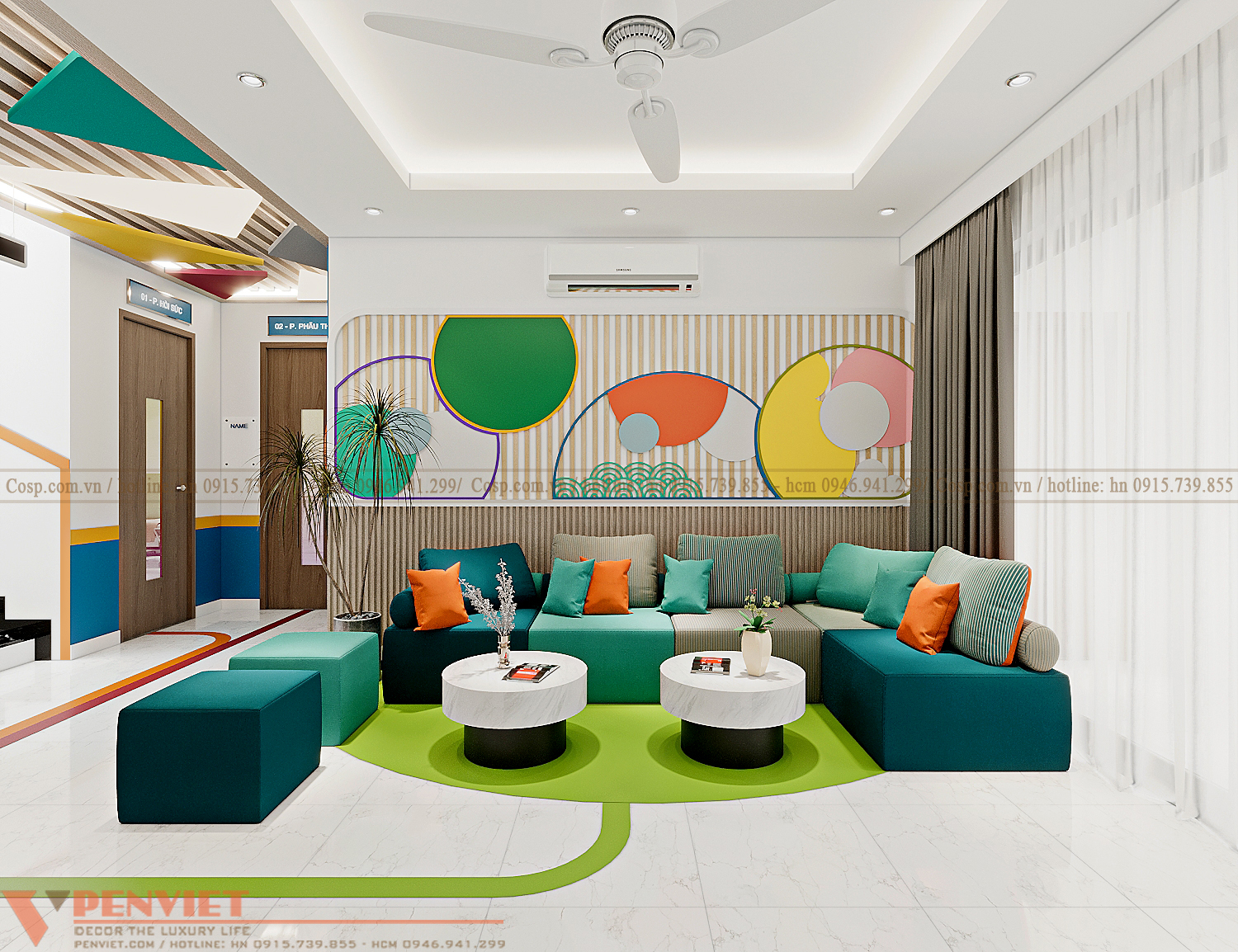 Các kiến trúc sư Penviet đã rất khéo léo trong việc sử dụng màu sắc, kiểu dáng nội thất cũng như kết hợp màu sắc để tạo nên sự liên kết và hình ảnh nhất quán cho cơ sở khám chữa bệnh này.