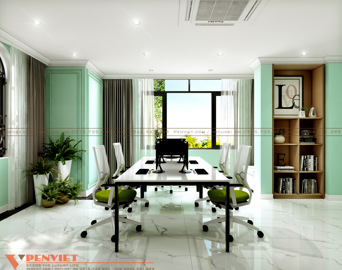Phòng kinh doanh được thiết kế tinh tế tạo một không gian mở thoáng đãng, đáp ứng được những yêu cầu về cơ sở vật chất, công năng sử dụng trong quá trình làm việc cho nhân viên.
