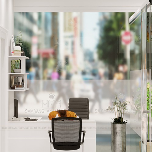 Thiết kế bệnh viện thú cưng Samyang được các kiến trúc sư của Penviet ngăn cách và phân chia các phòng bằng kính cường lực giúp tạo không gian mở. Bên cạnh đó, chúng tôi cũng sử dụng giấy dán mờ có tên và logo của bệnh viện để tạo sự ghi nhớ với khách hàng đồng thời cũng bảo đảm sự riêng tư cần thiết cho phòng khám.