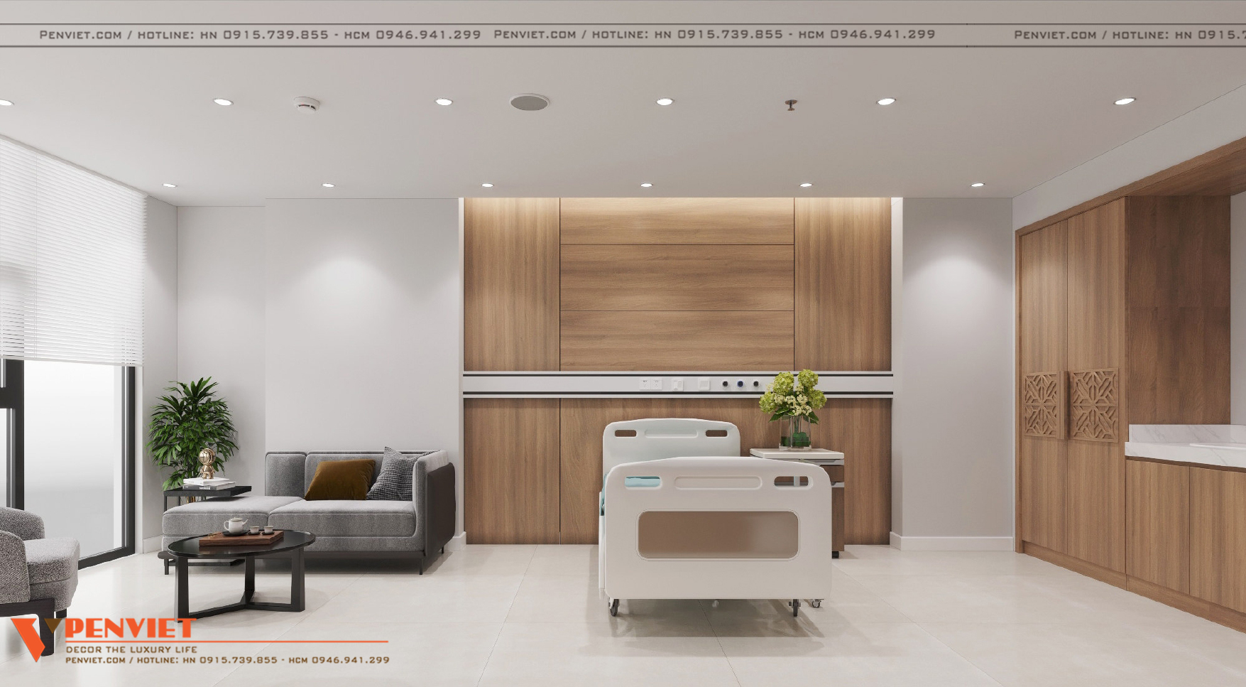 Phòng thanh trùng là phòng chức năng không thể thiếu khi thiết kế bệnh viện đông y. Thiết kế phòng sử dụng vật liệu an toàn, dễ vệ sinh đảm bảo không có sự xuất hiện, xâm lấn của vi trùng vi khuẩn.