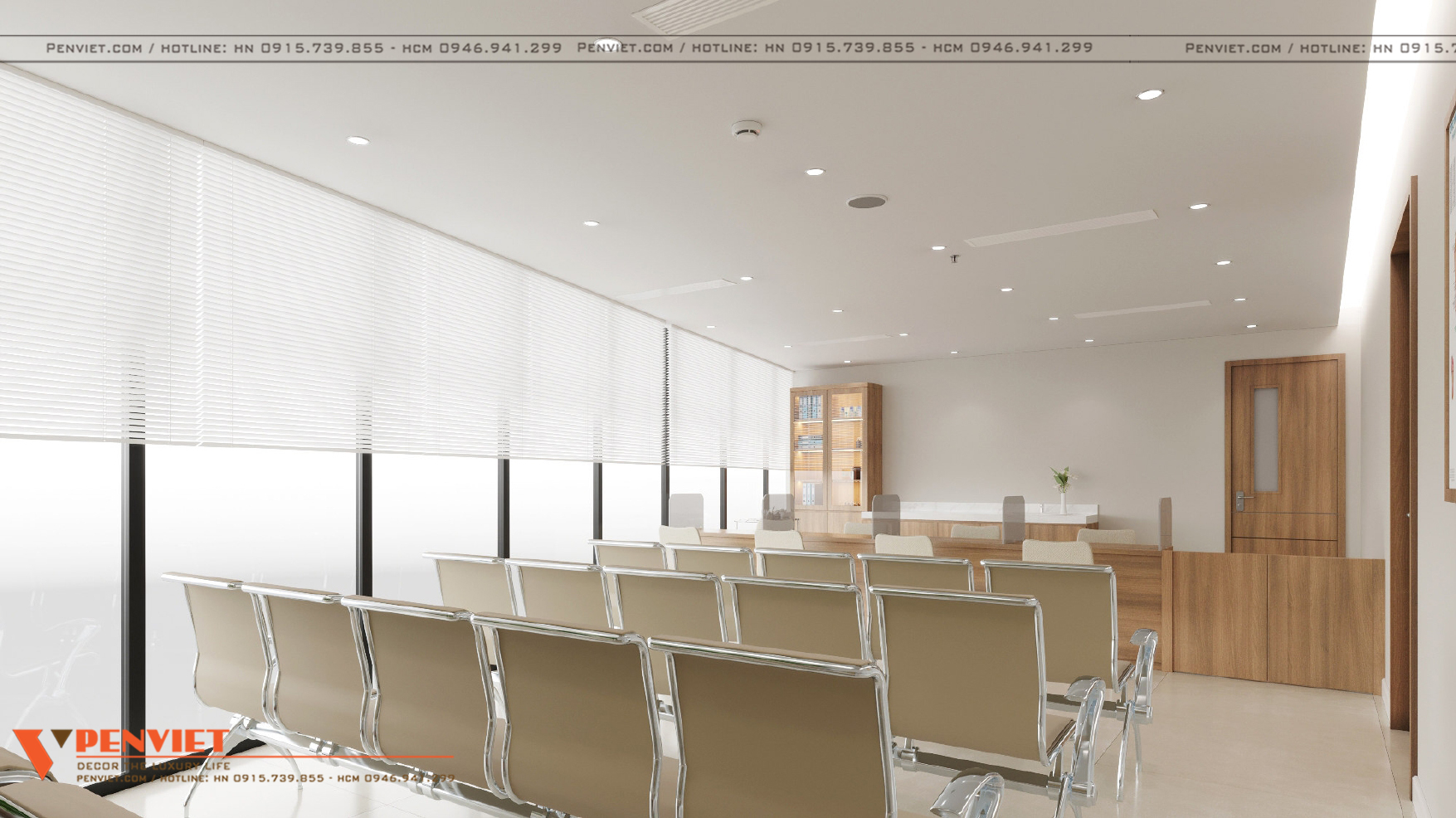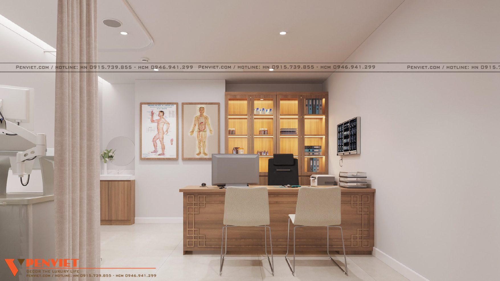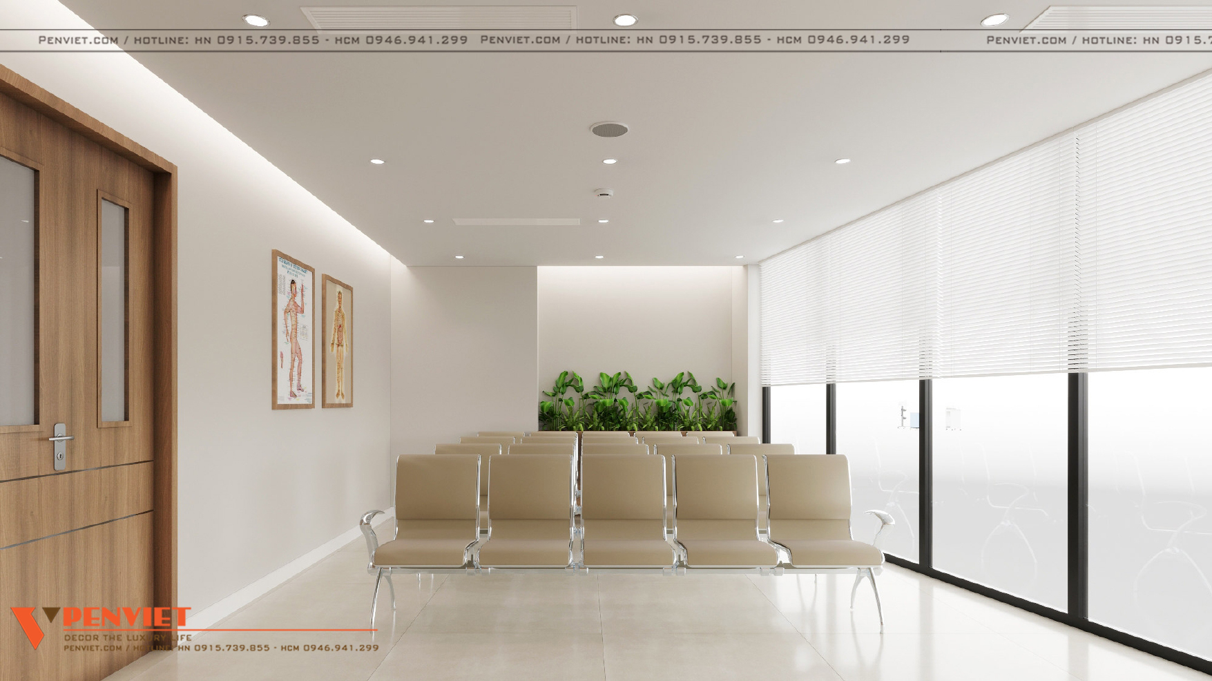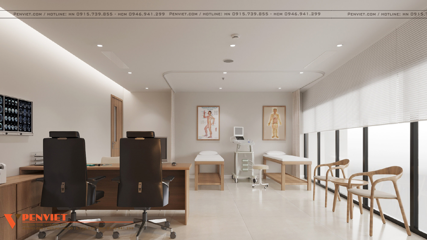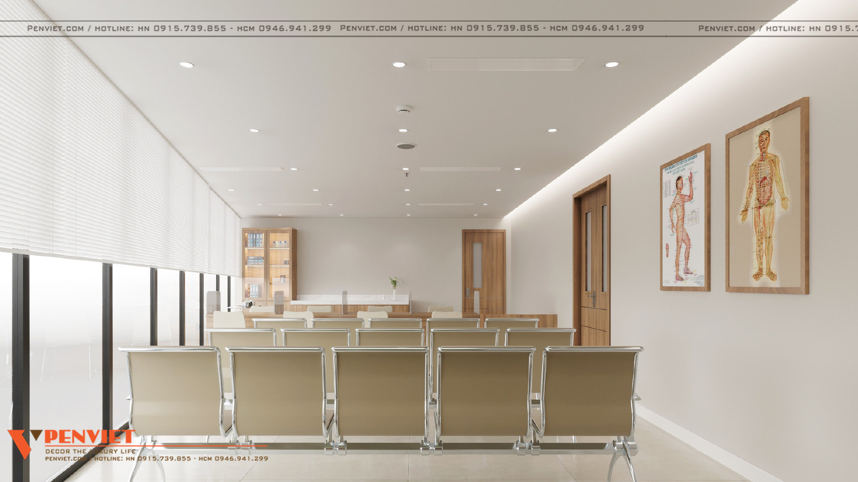 Bệnh nhân đến khám chữa bệnh thường mang tâm lý lo lắng, e ngại. Do vậy Penviet đã bố trí đồ nội thất, trang trí không gian một cách vừa đủ để thiết kế phòng khám trở nên thoáng rộng, giúp người bệnh bớt lo lắng.