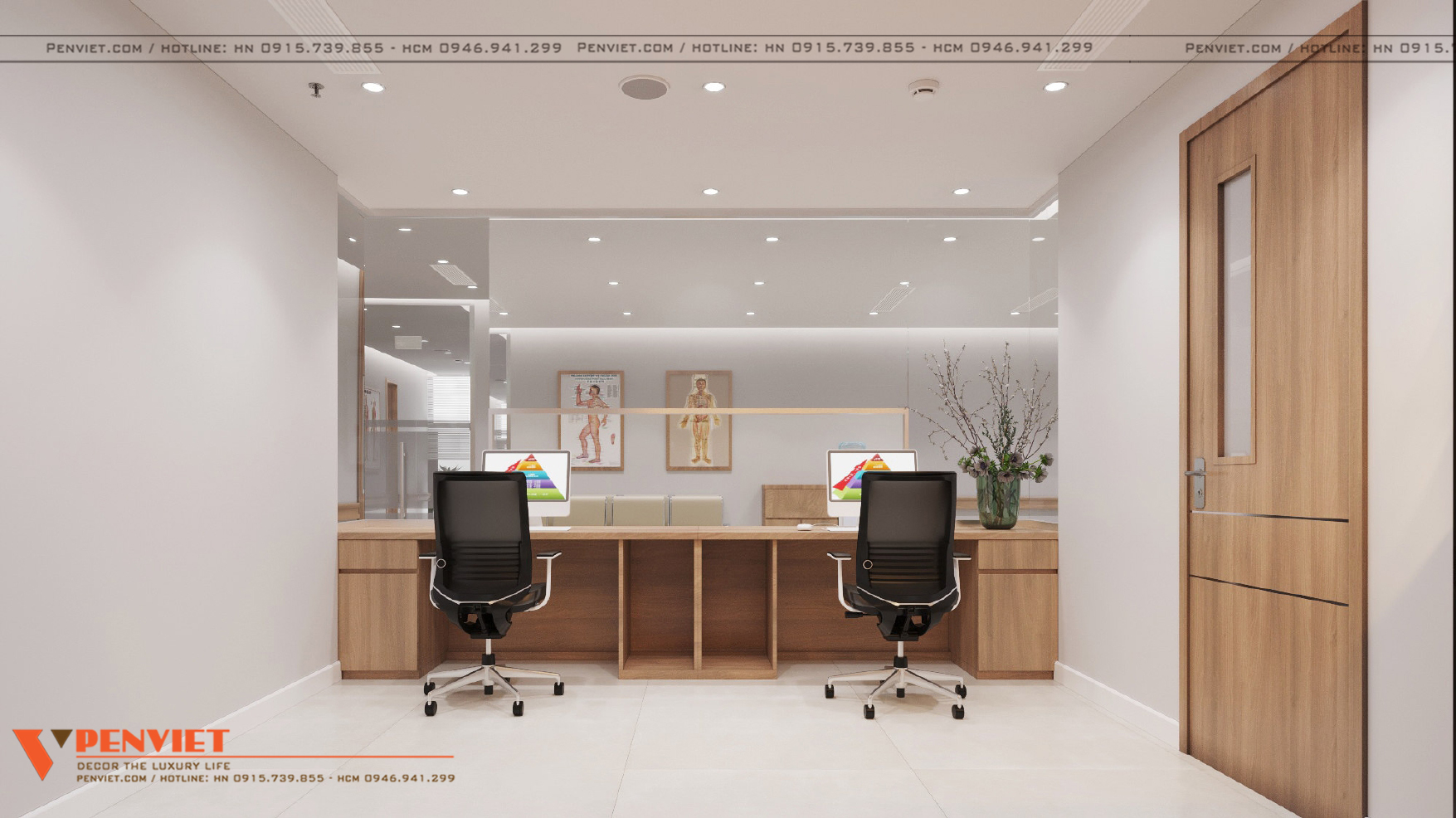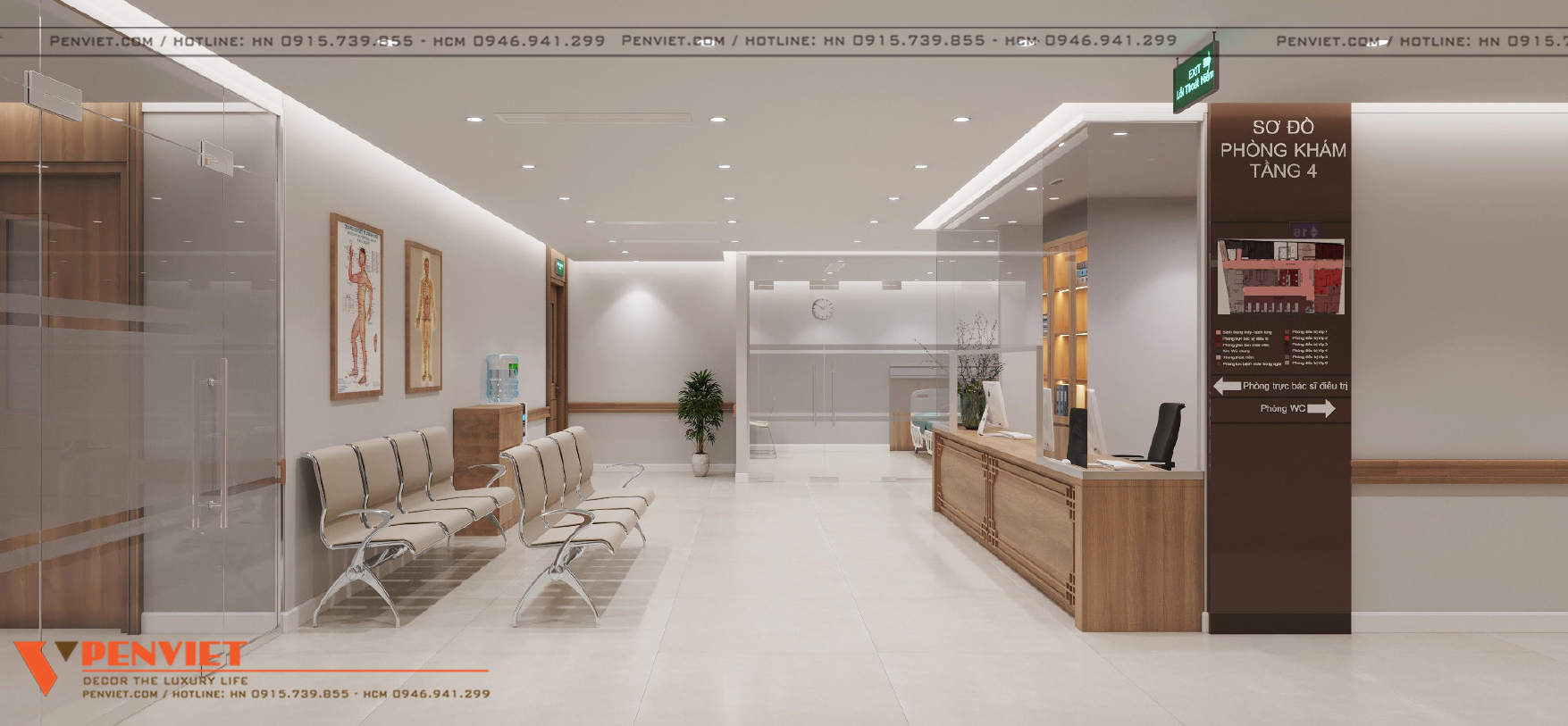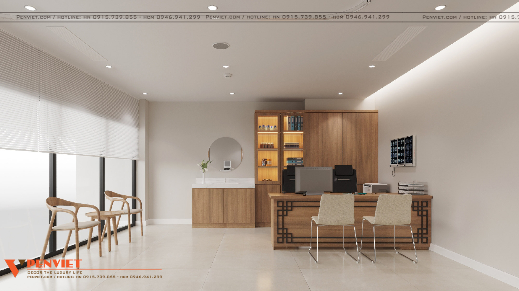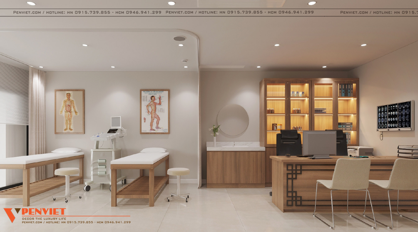 Bệnh nhân đến khám chữa bệnh thường mang tâm lý lo lắng, e ngại. Do vậy Penviet đã bố trí đồ nội thất, trang trí không gian một cách vừa đủ để thiết kế phòng khám trở nên thoáng rộng, giúp người bệnh bớt lo lắng.