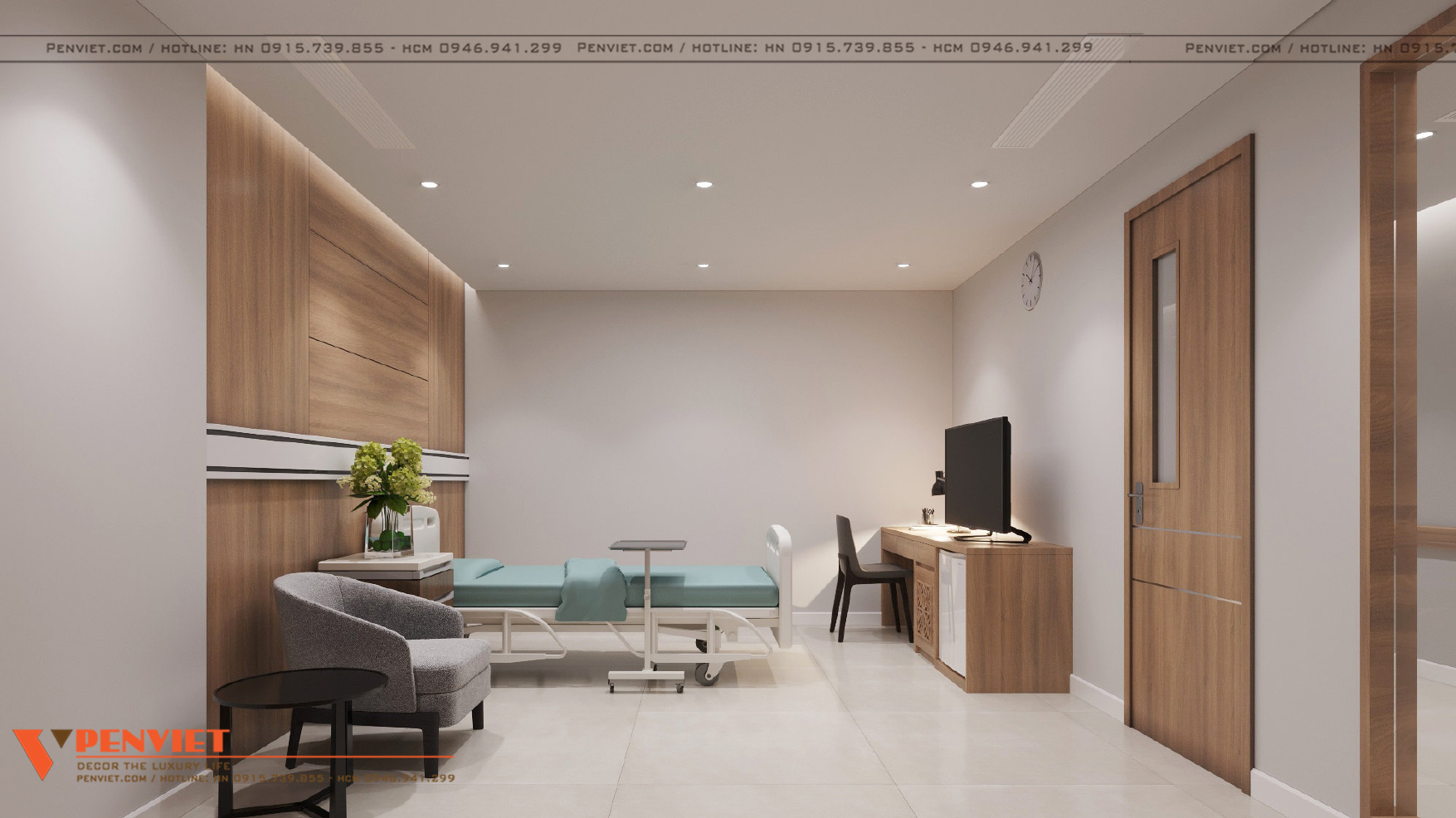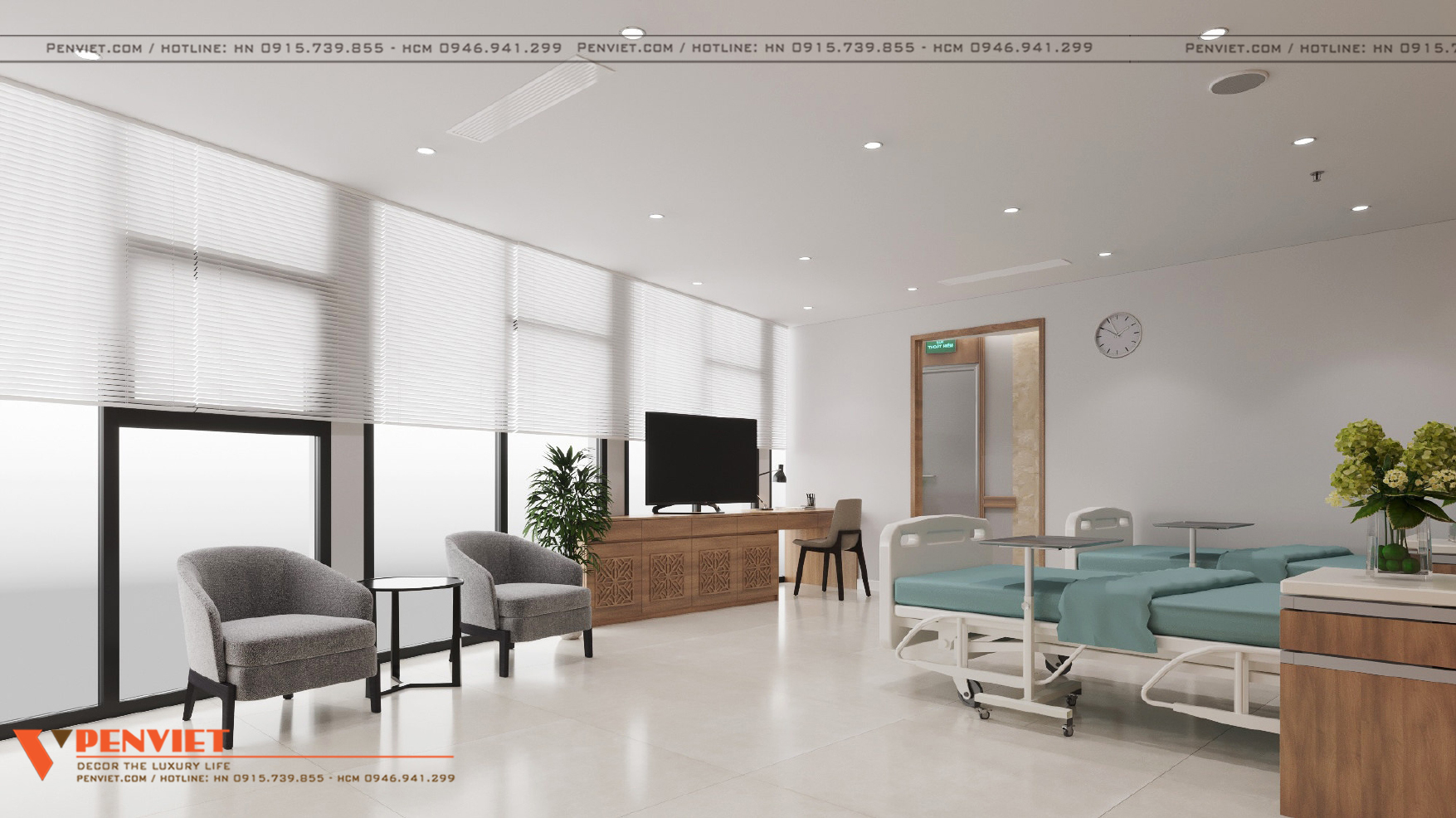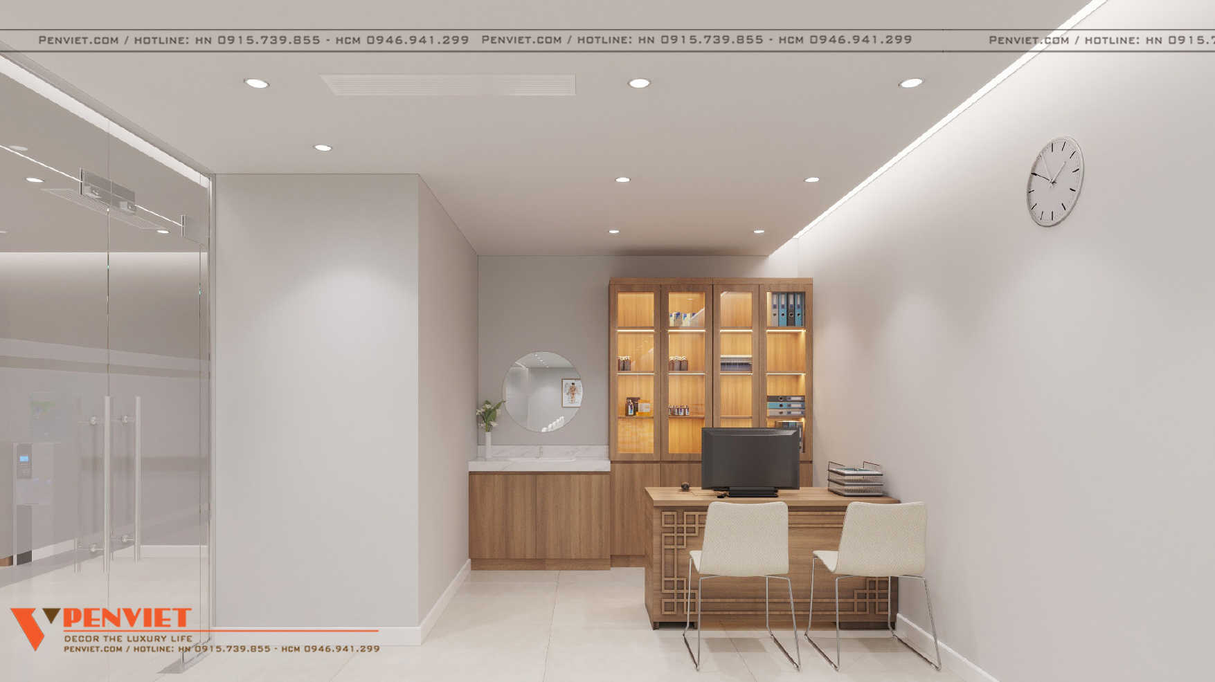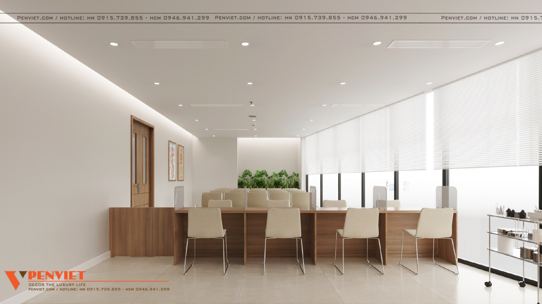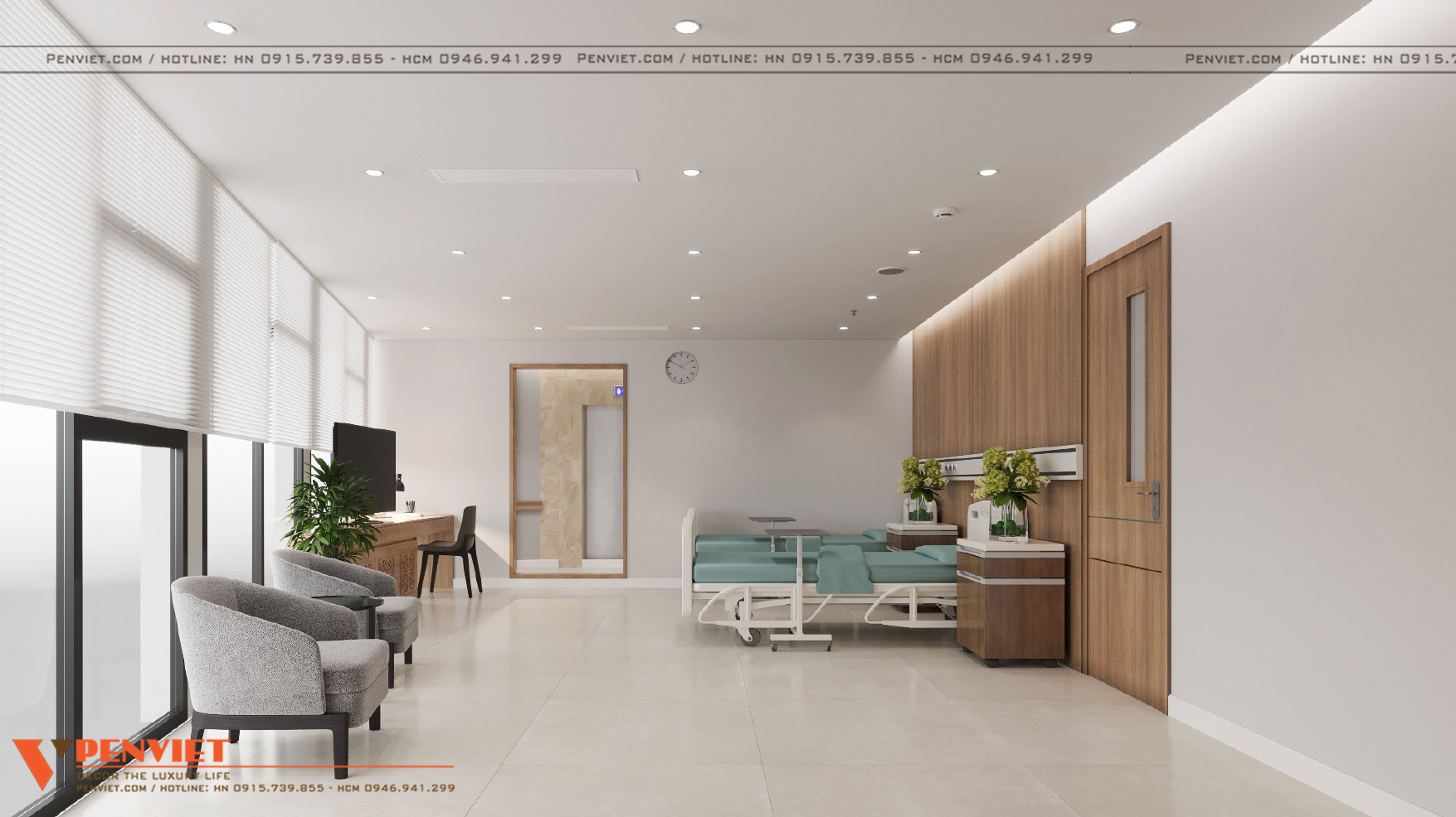 Bệnh nhân đến khám chữa bệnh thường mang tâm lý lo lắng, e ngại. Do vậy Penviet đã bố trí đồ nội thất, trang trí không gian một cách vừa đủ để thiết kế phòng khám trở nên thoáng rộng, giúp người bệnh bớt lo lắng.