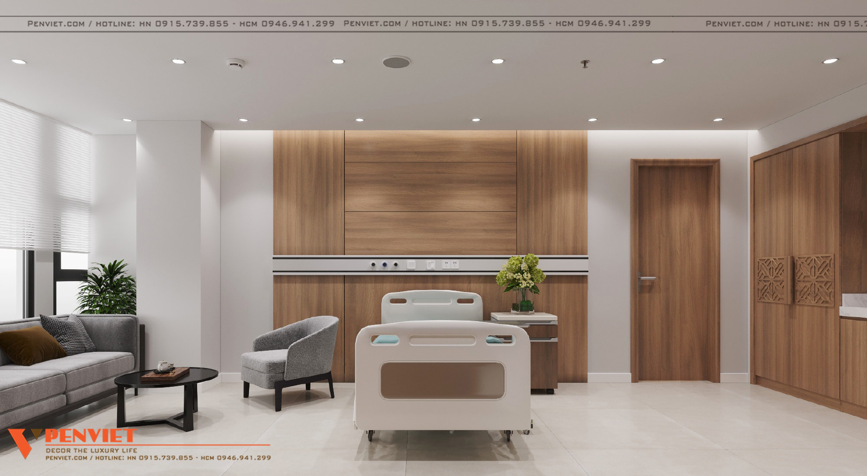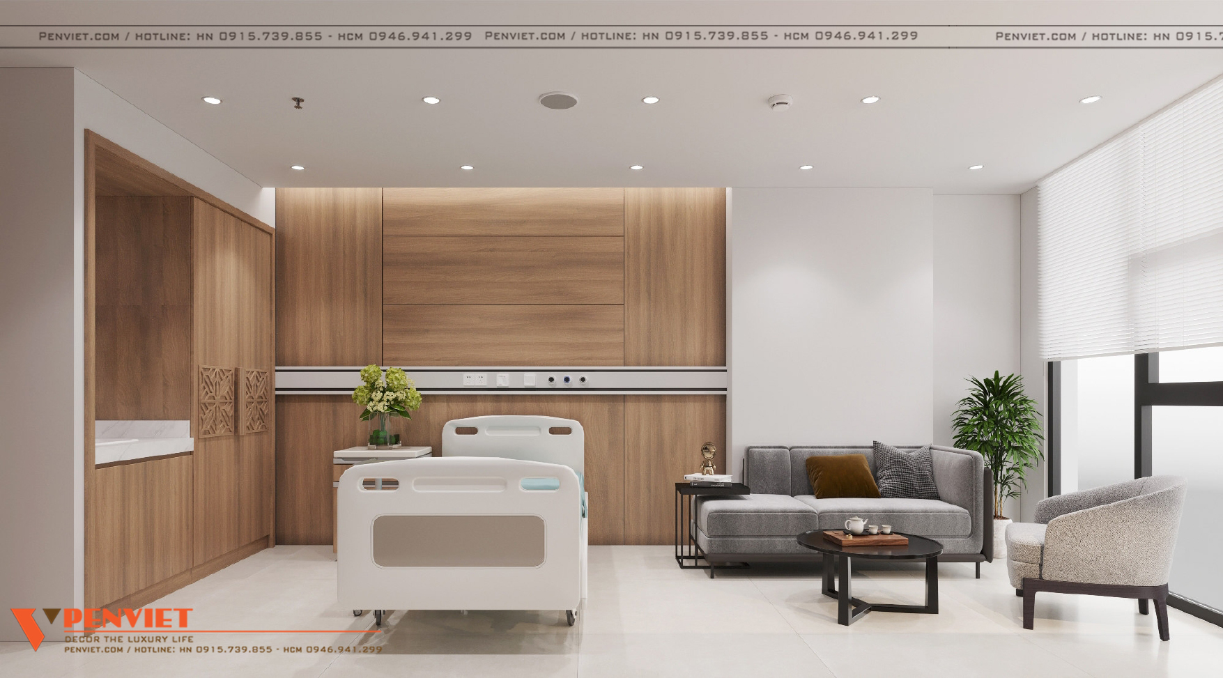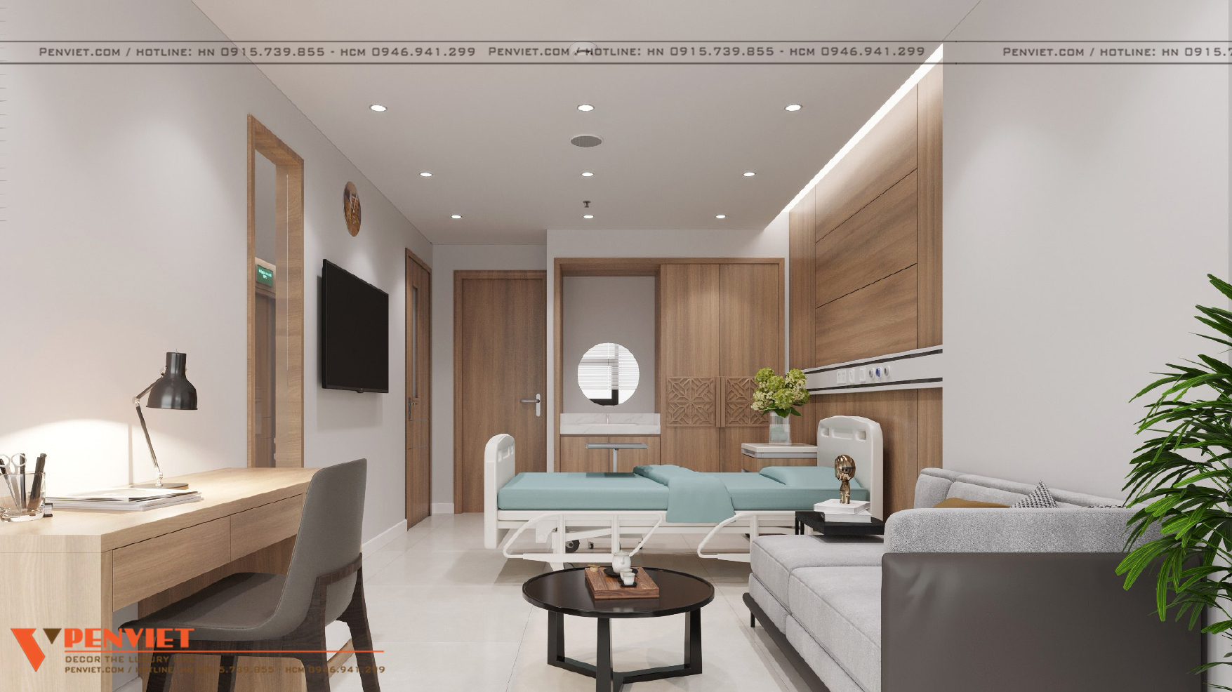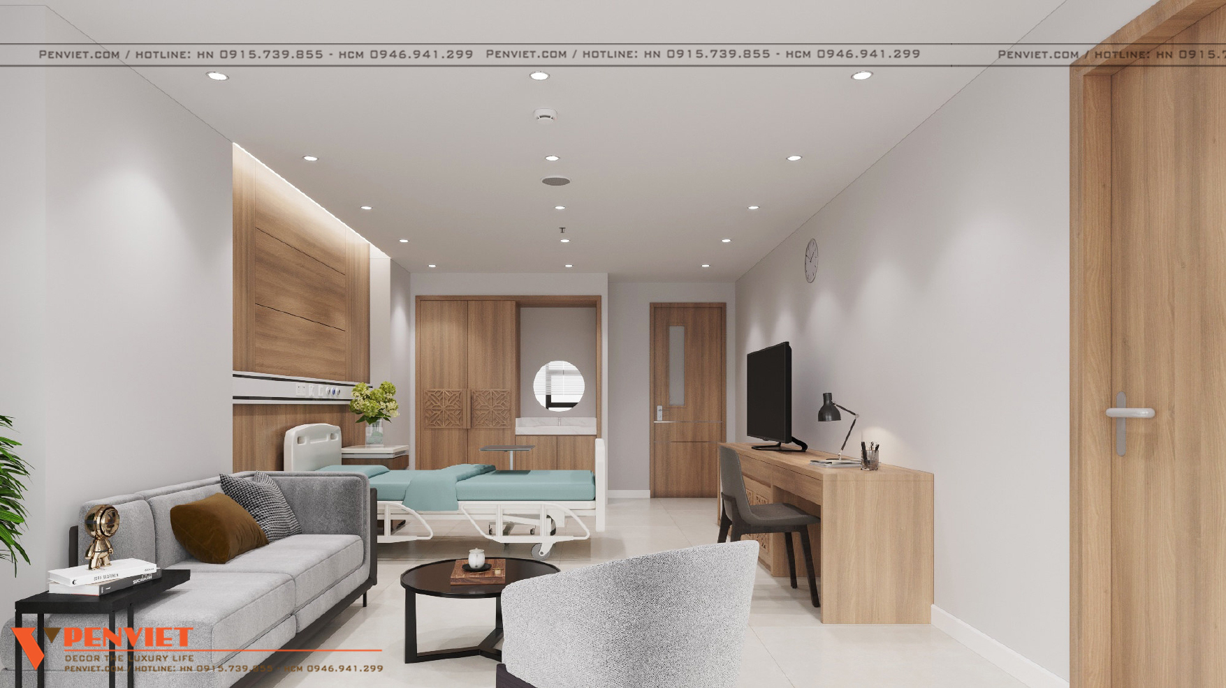 Bệnh nhân đến khám chữa bệnh thường mang tâm lý lo lắng, e ngại. Do vậy Penviet đã bố trí đồ nội thất, trang trí không gian một cách vừa đủ để thiết kế phòng khám trở nên thoáng rộng, giúp người bệnh bớt lo lắng.
