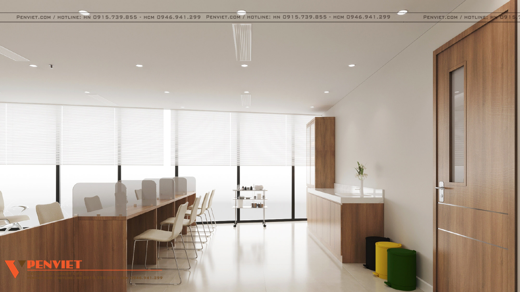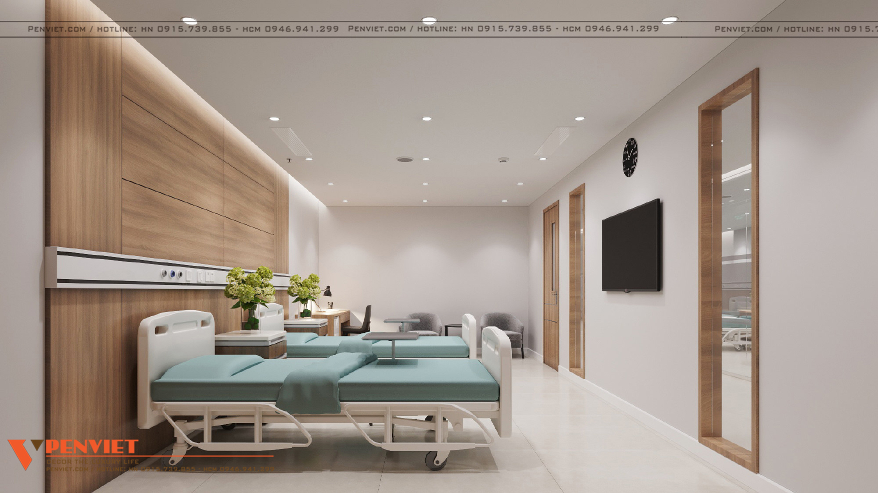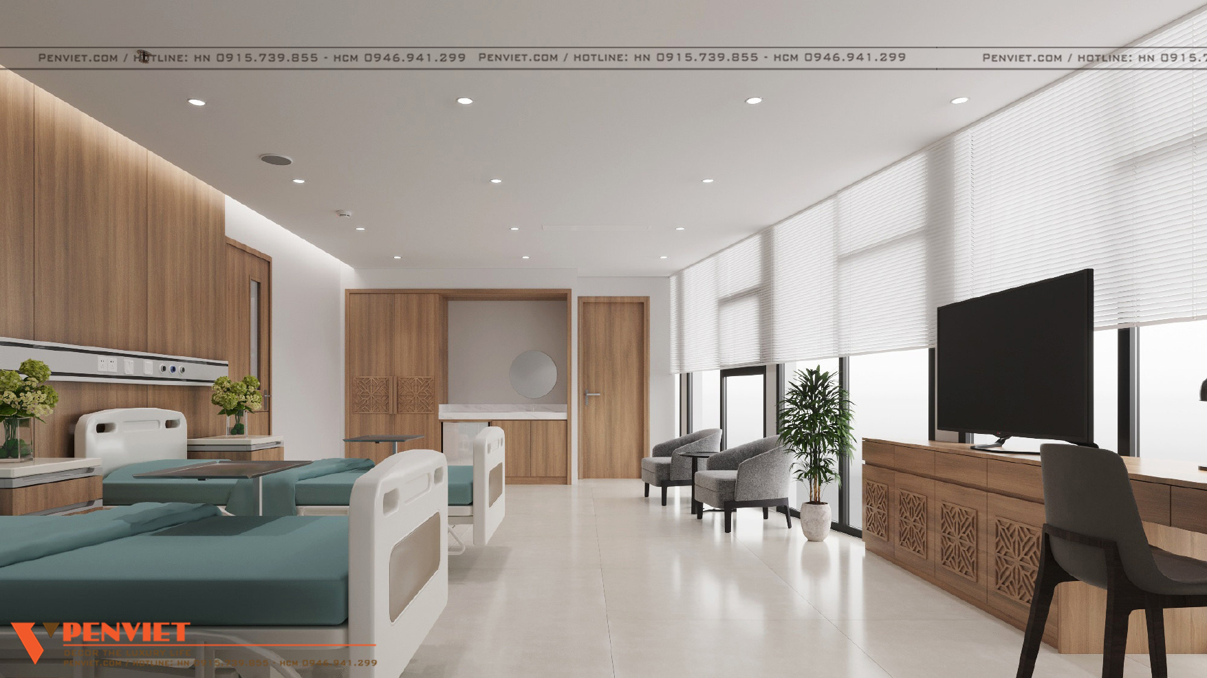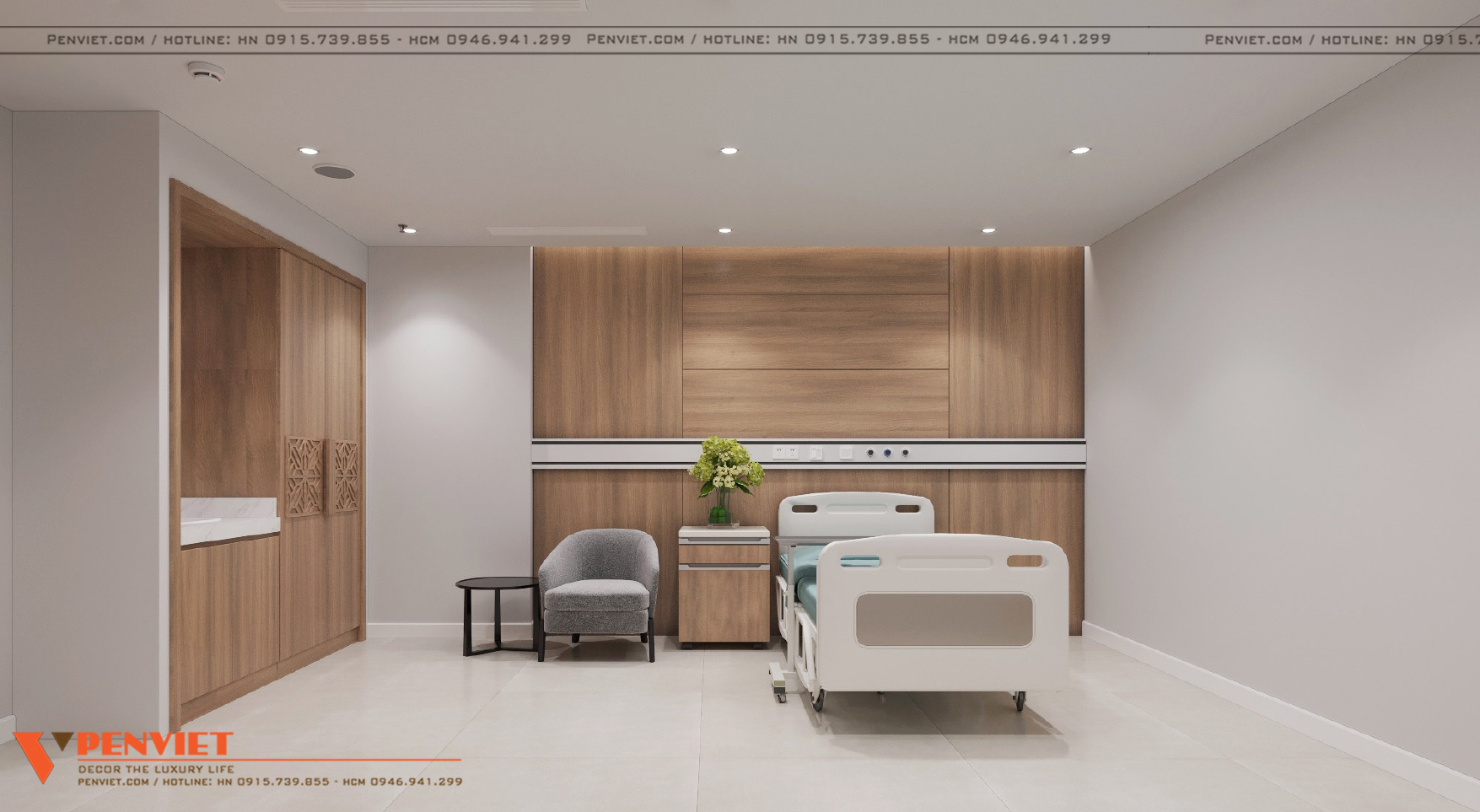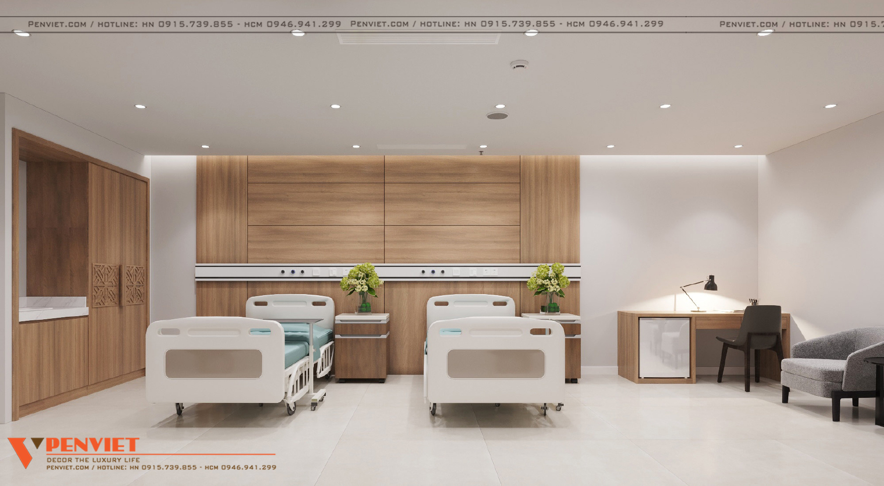 Bệnh nhân đến khám chữa bệnh thường mang tâm lý lo lắng, e ngại. Do vậy Penviet đã bố trí đồ nội thất, trang trí không gian một cách vừa đủ để thiết kế phòng khám trở nên thoáng rộng, giúp người bệnh bớt lo lắng.