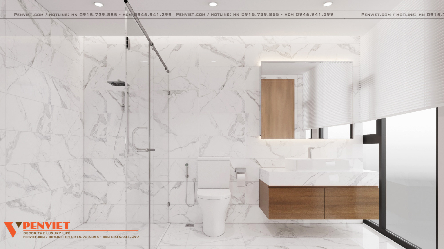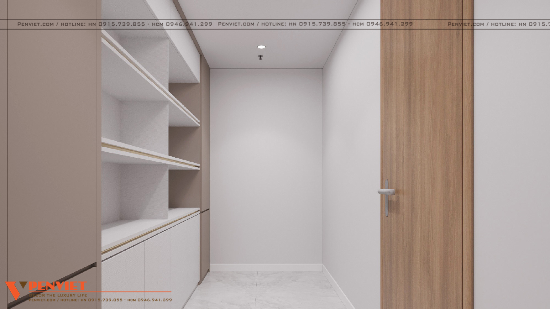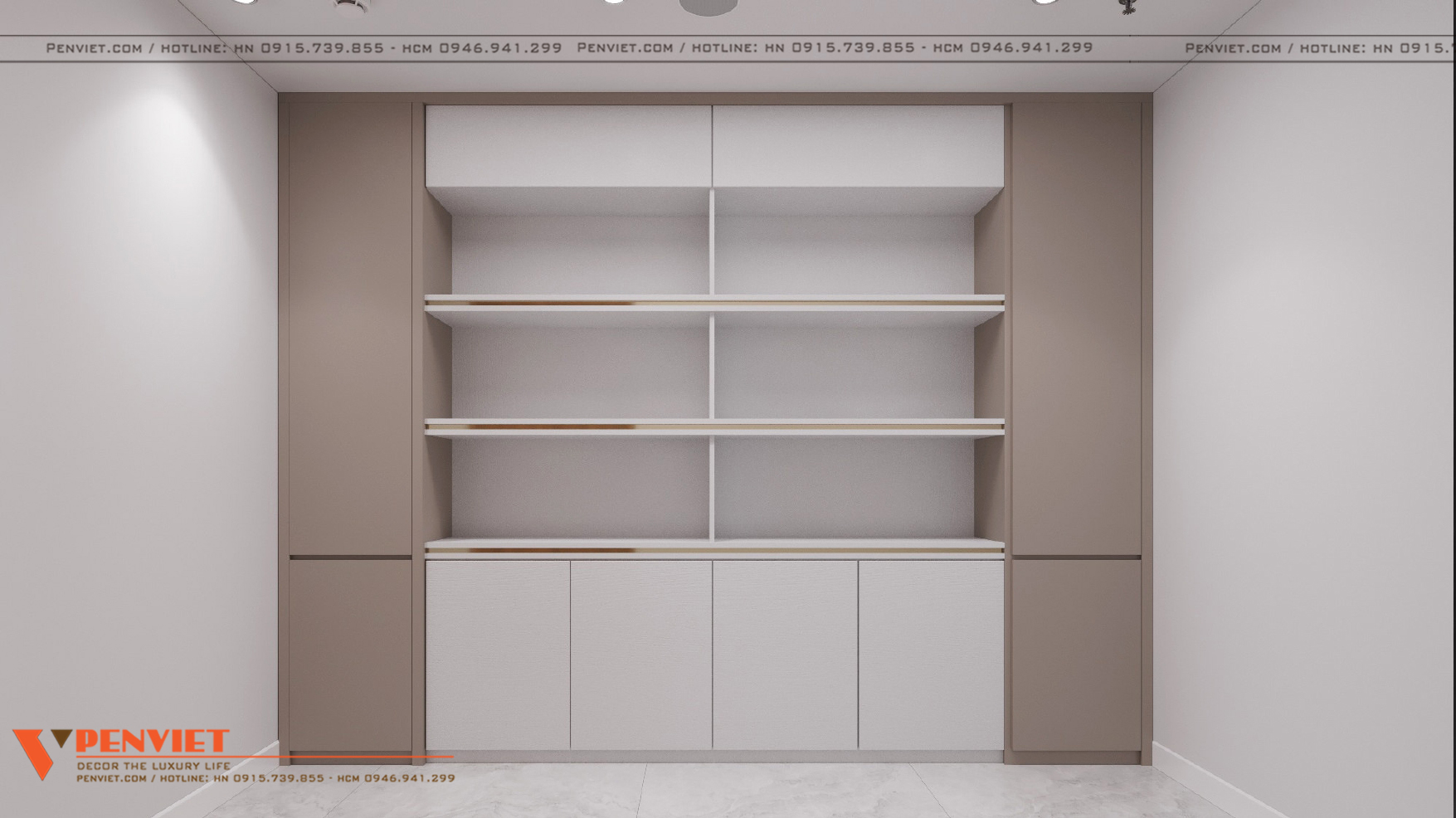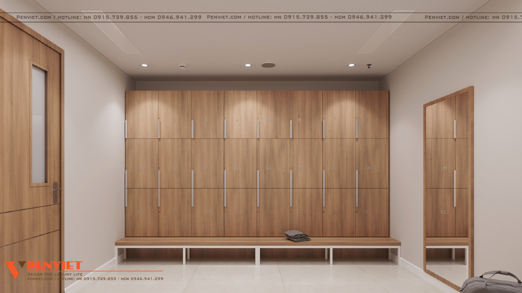 Do đó thiết kế phòng vật tư y tế, Penviet sử dụng hệ tủ lưu trữ chất liệu gỗ MDF phủ melamin nhiều ngăn nhỏ để dễ dàng sắp sếp phân loại vật tư y tế. Thêm vào đó, kết hợp cửa kính để nhân viên y tế dễ dàng tìm kiếm và quản lý.