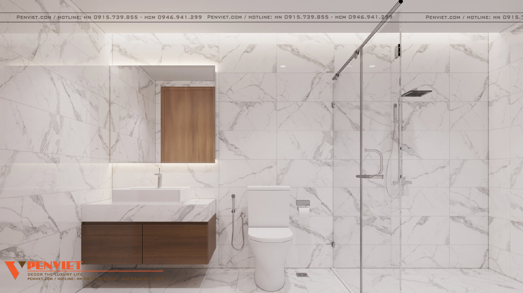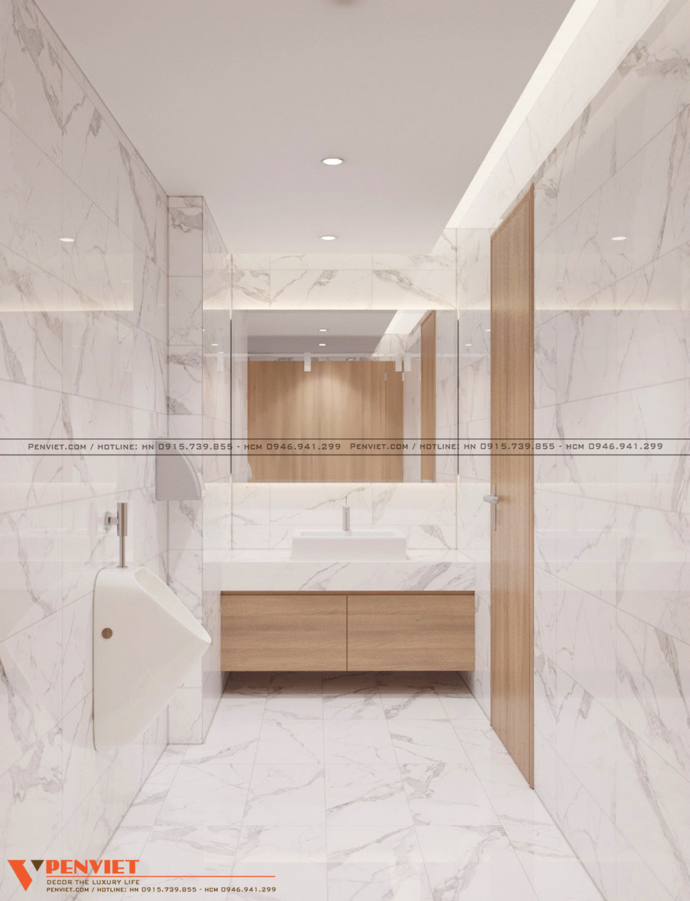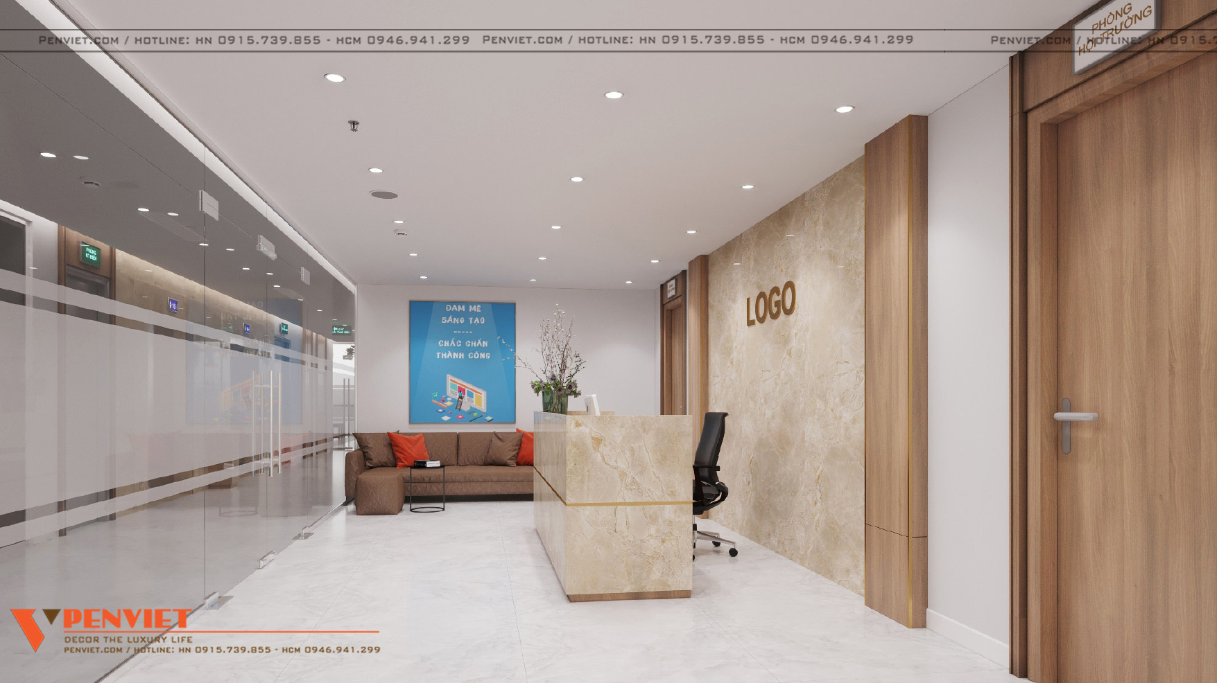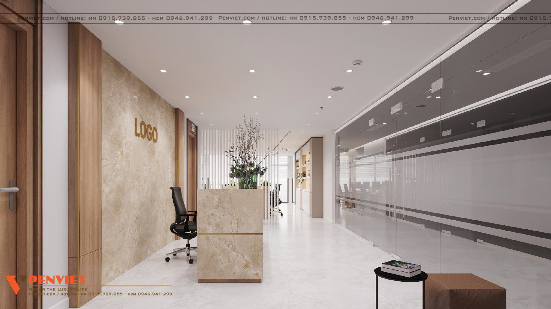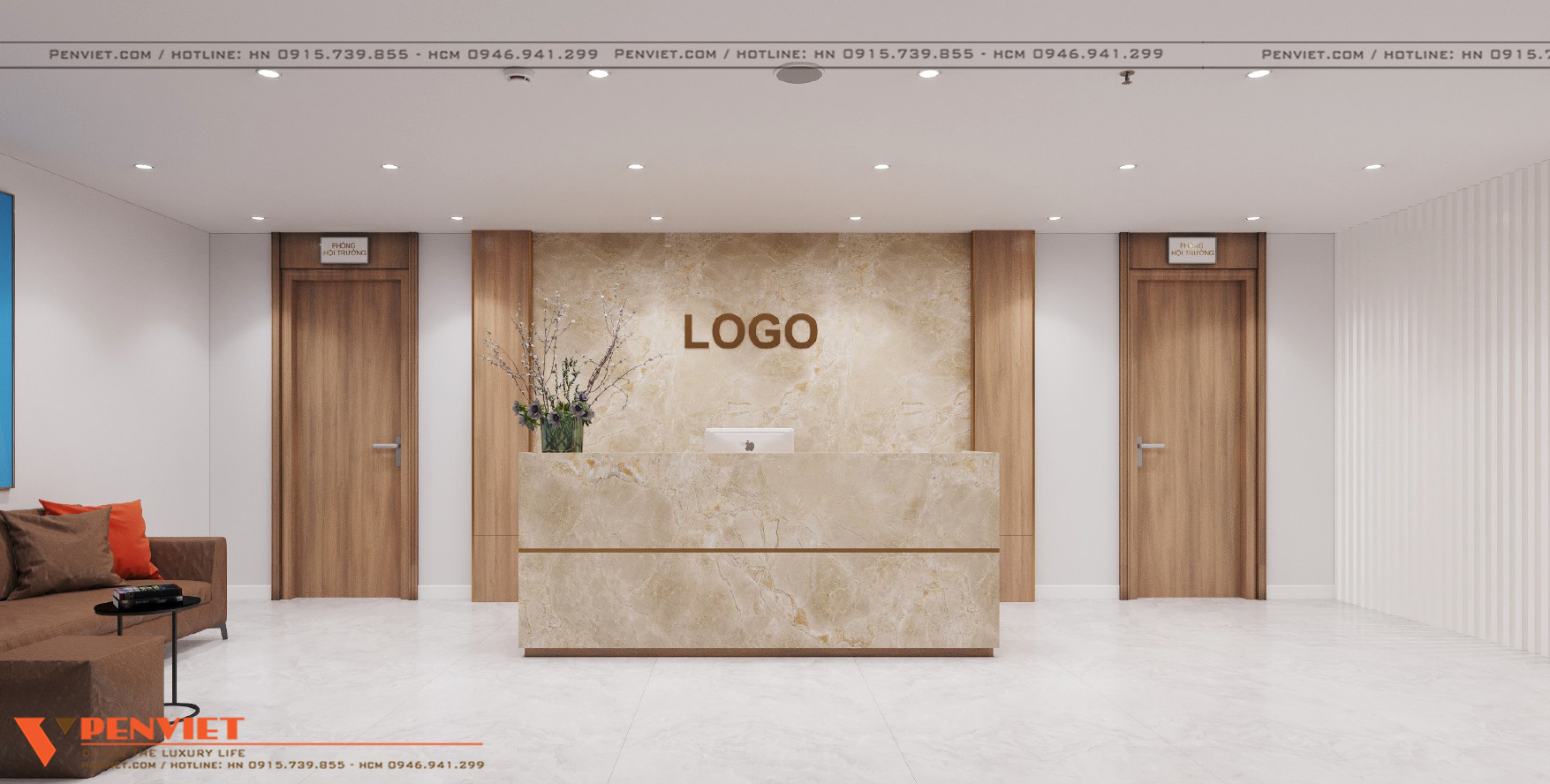 Chúng tôi thiết kế quầy thu ngân hiện đại làm từ gỗ tự nhiên kết hợp ốp PVC vân đá mang tới cảm giác vừa hiện đại, vừa sang trọng. PenViet bố trí các ghế ngồi tiện dụng cho khách, mang tới sự thuận tiện trong quá trình làm thủ tục.