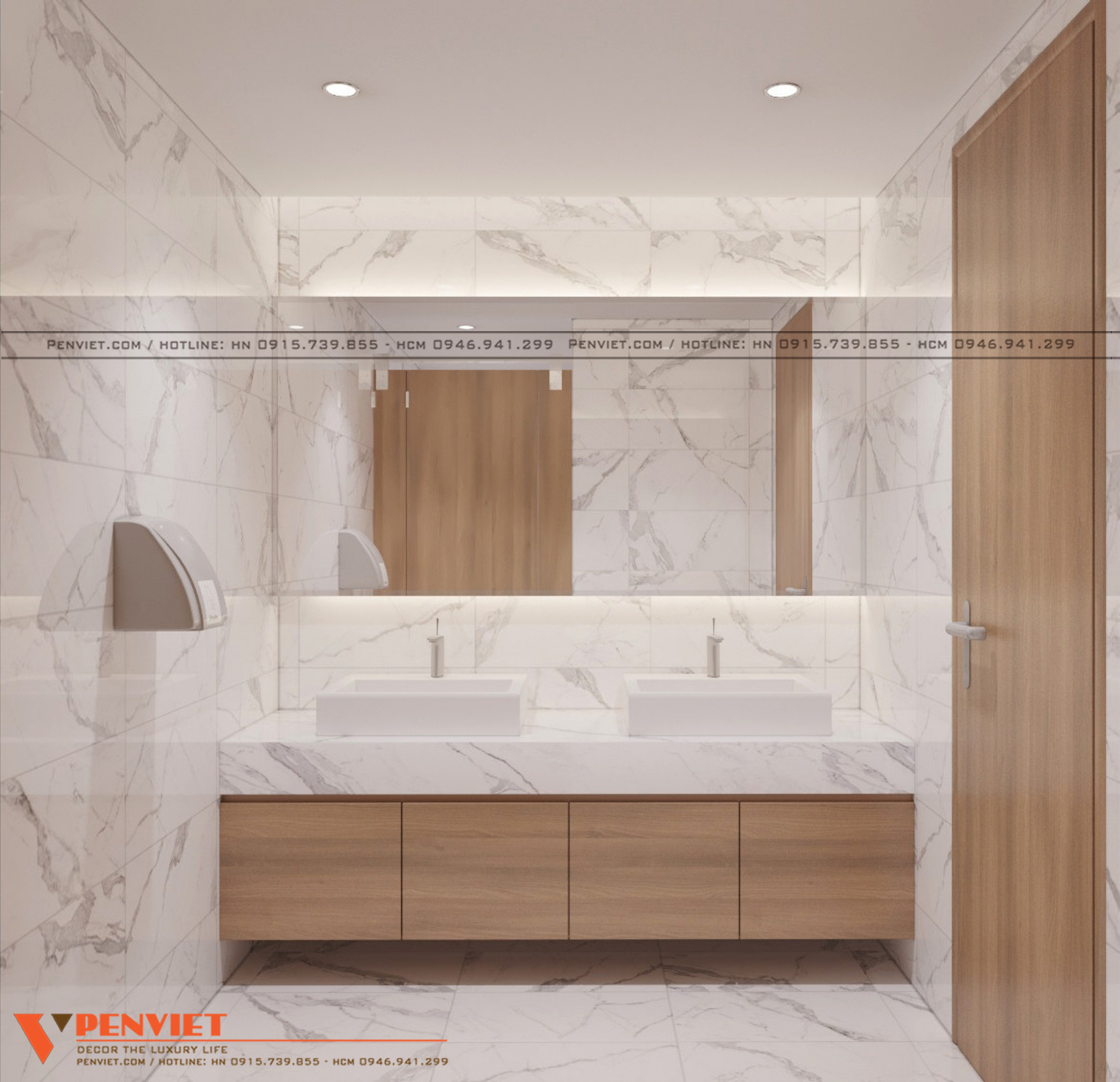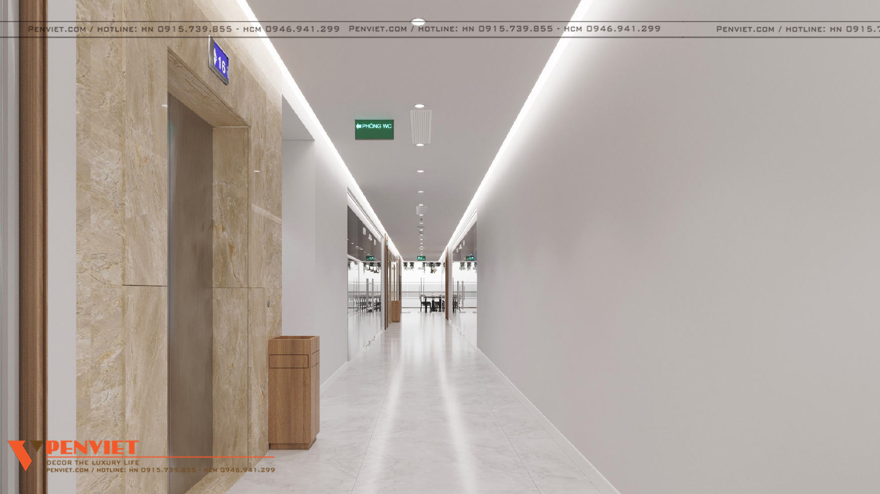 Sảnh lễ tân tầng 2 được PenViet tư vấn đặt ở vị trí trung tâm, để khách hàng có thể nhận được chỉ dẫn và tư vấn nhanh chóng tận tâm trong suốt quá trình sử dụng dịch vụ tại đây.