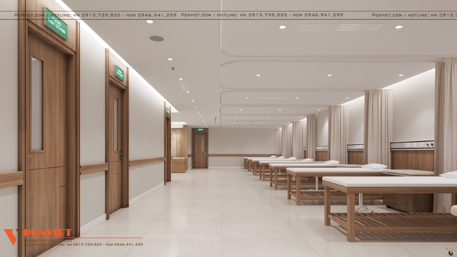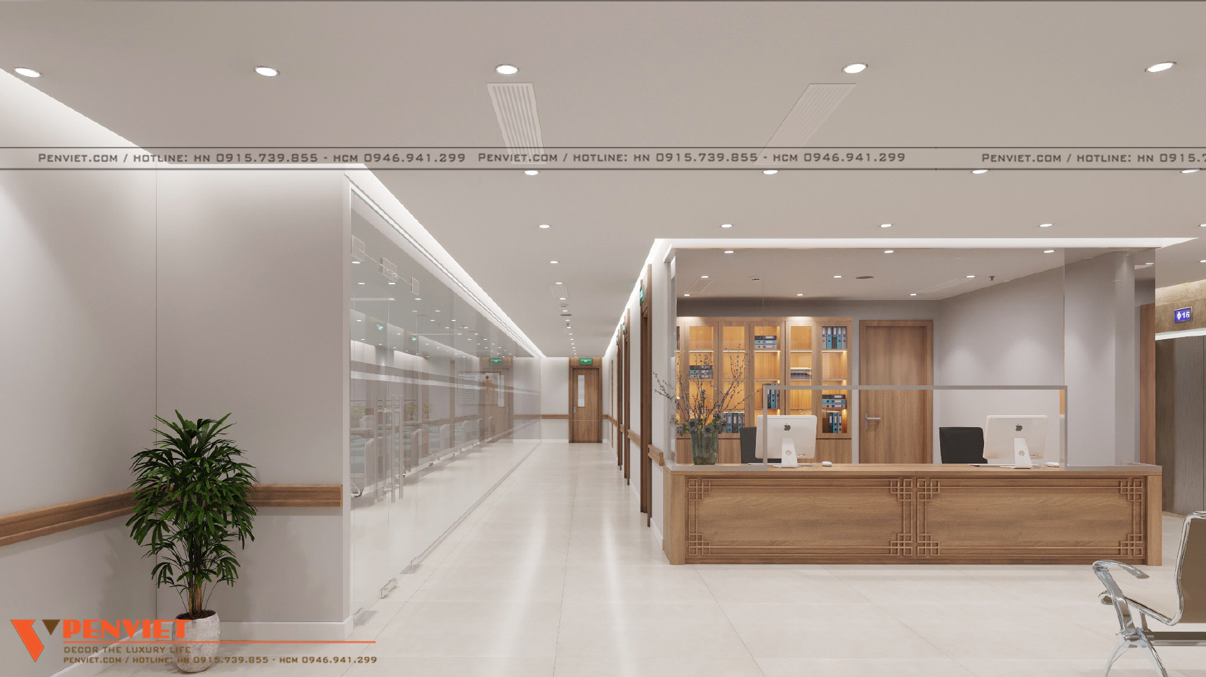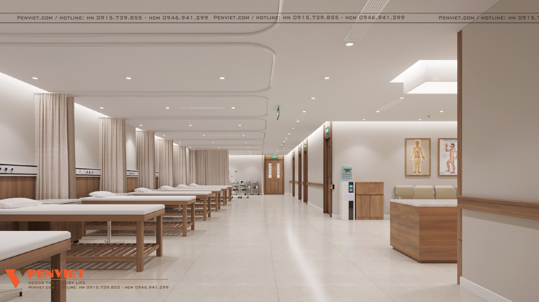 Thiết kế bệnh viện đông y, chúng tôi tư vấn chủ đầu tư phương án thiết kế phong cách hiện đại, sử dụng màu sắc trang nhã phù hợp với đặc trưng của ngành đông y tạo được cảm giác thân thiện, gần gũi, giảm thiểu sự lo lắng, căng thẳng của người bệnh khi đến thăm khám.