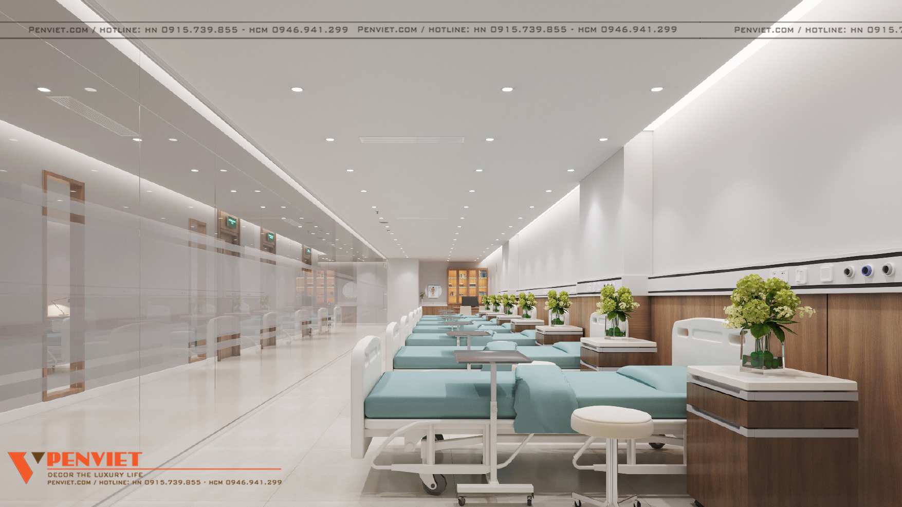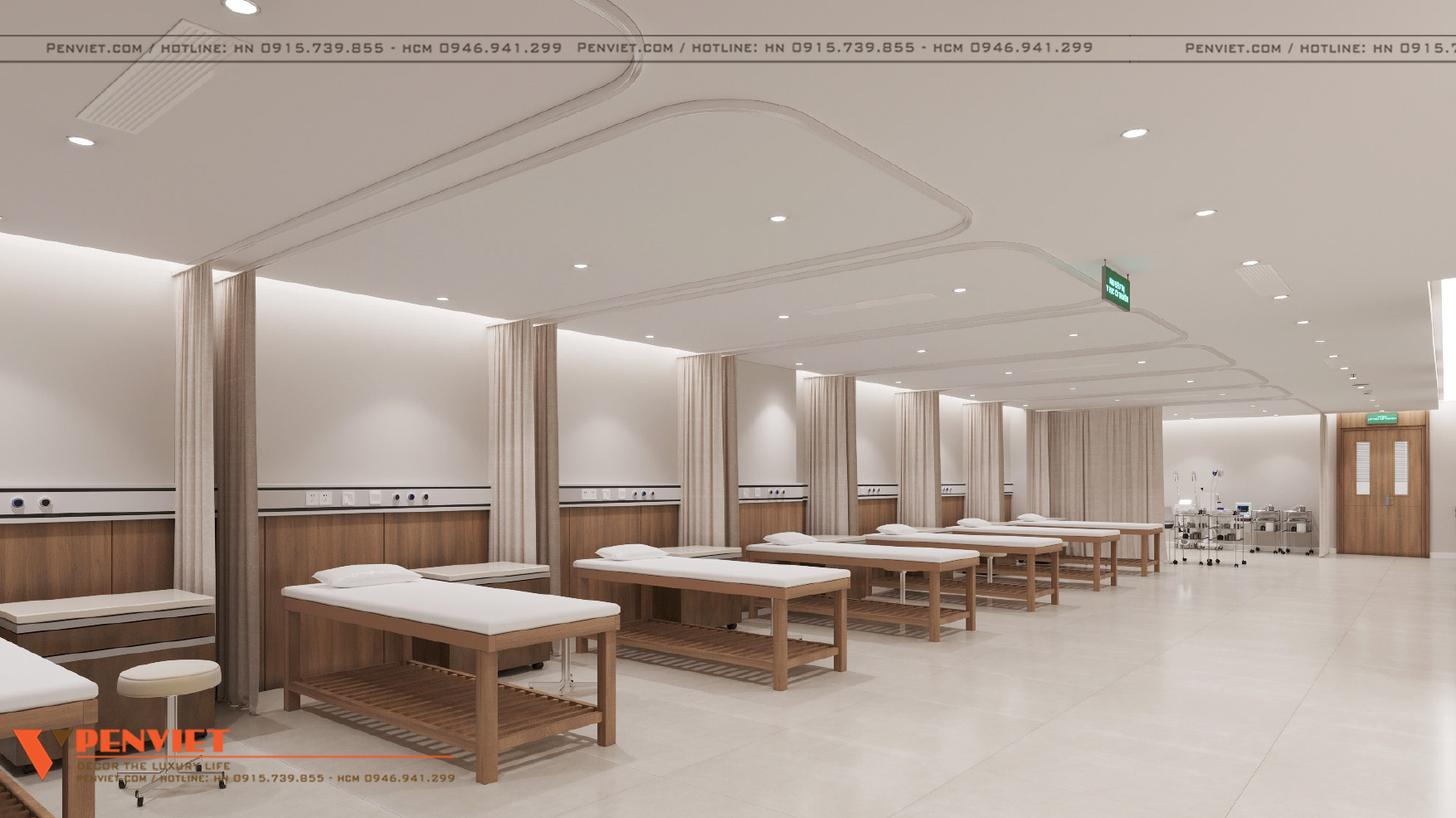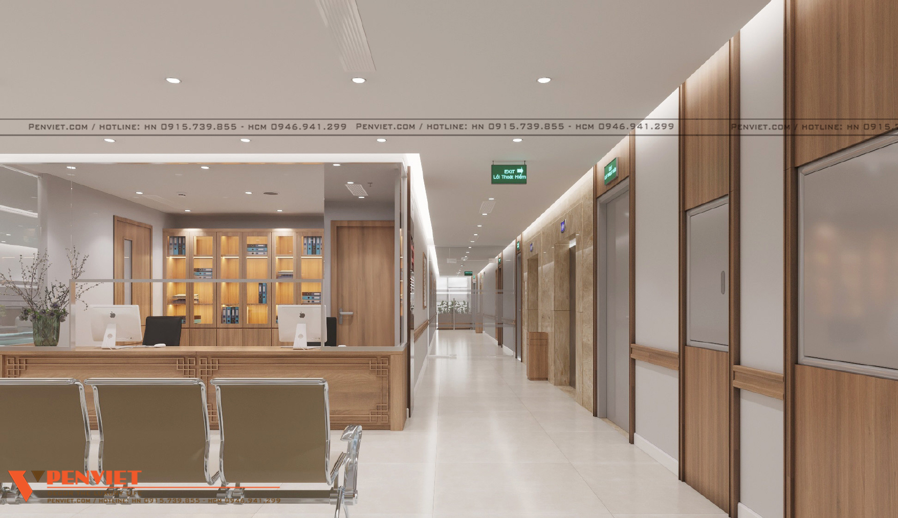 Thiết kế bệnh viện đông y, chúng tôi tư vấn chủ đầu tư phương án thiết kế phong cách hiện đại, sử dụng màu sắc trang nhã phù hợp với đặc trưng của ngành đông y tạo được cảm giác thân thiện, gần gũi, giảm thiểu sự lo lắng, căng thẳng của người bệnh khi đến thăm khám.