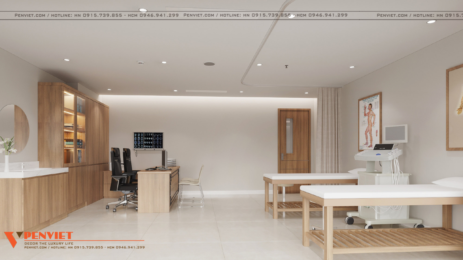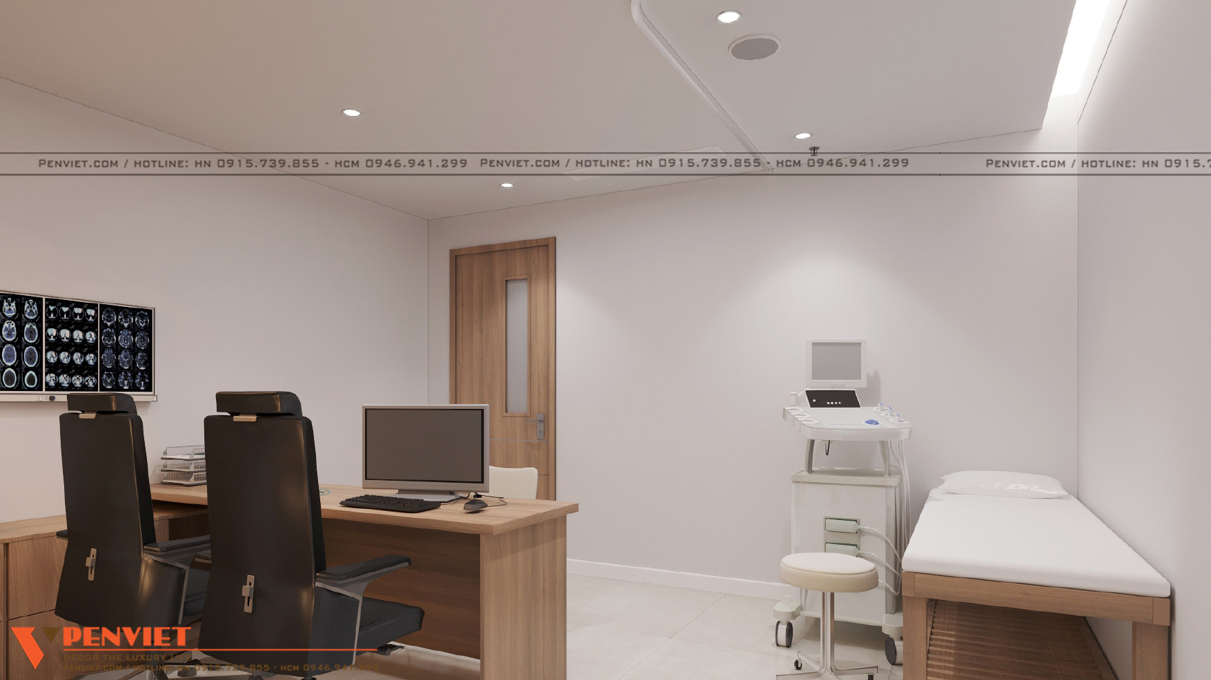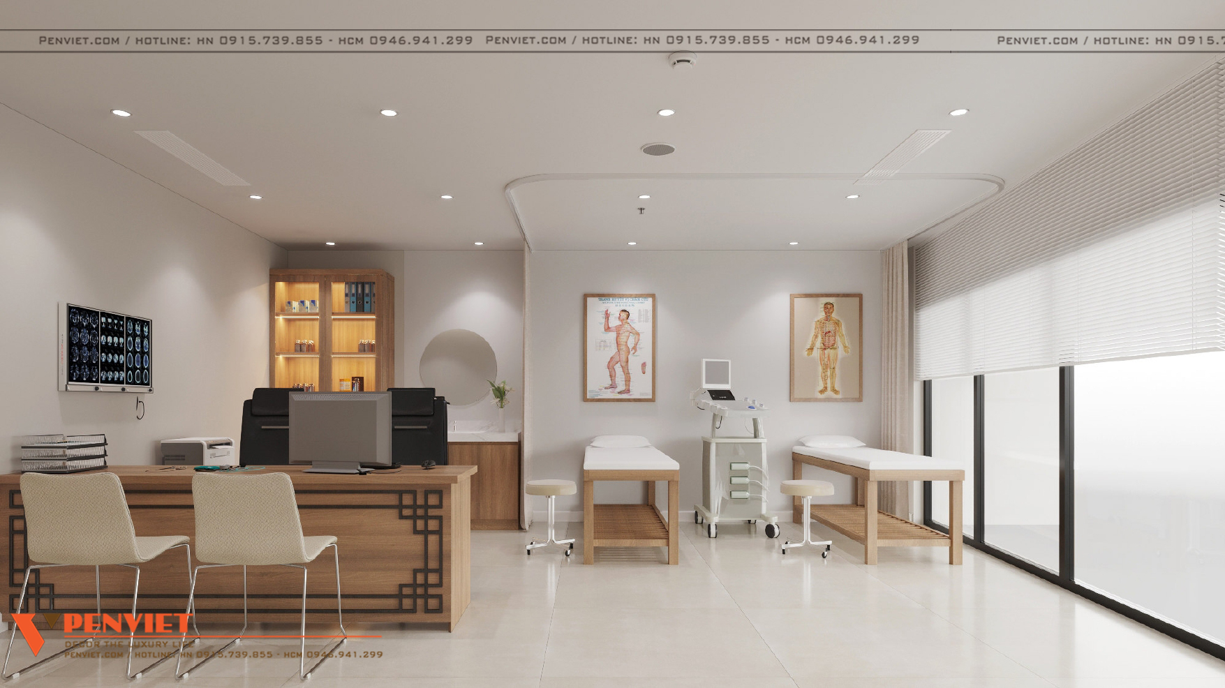Đây là nơi bác sĩ sẽ khám tổng quát cho bệnh nhân, vì thế, đồ nội thất và trang thiết bị đặc trưng của lĩnh vực được bố trí đầy đủ, đáp ứng được mọi nhu cầu trong không gian khép kín.