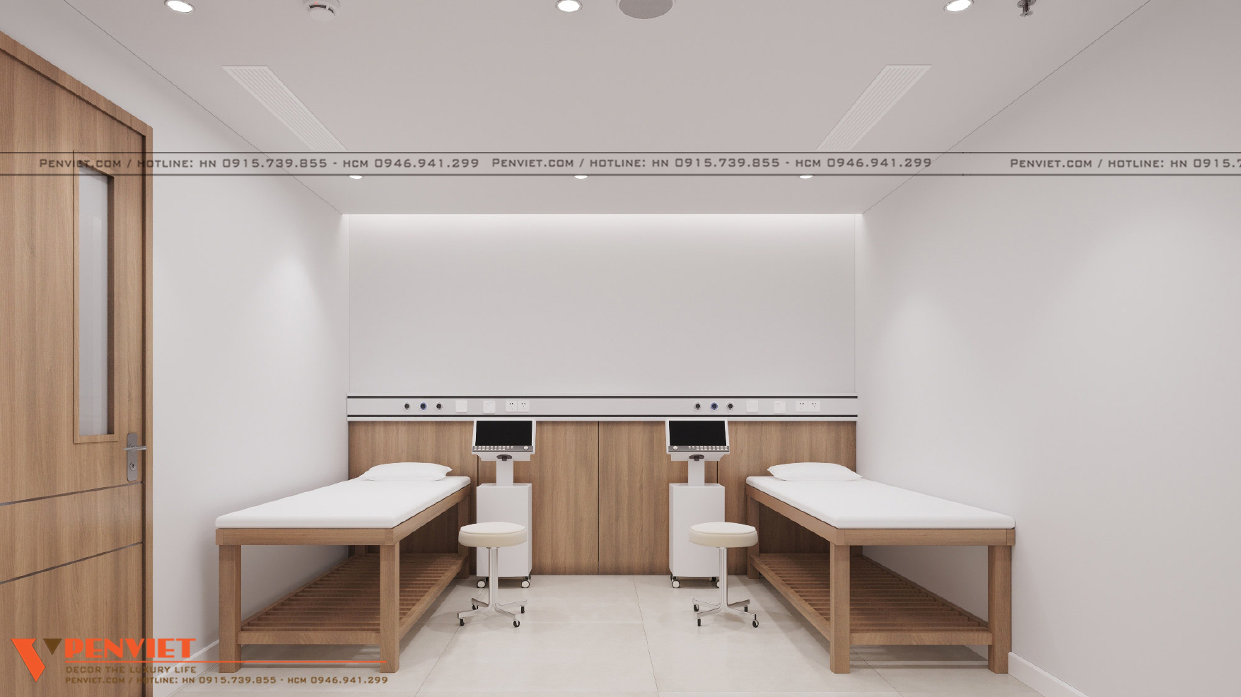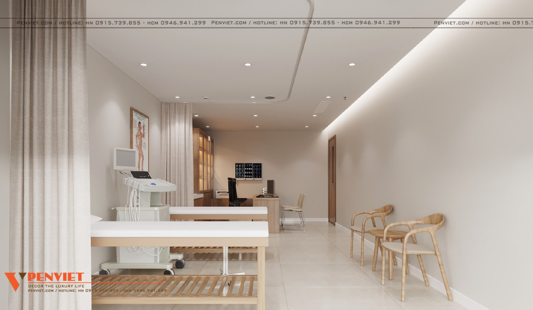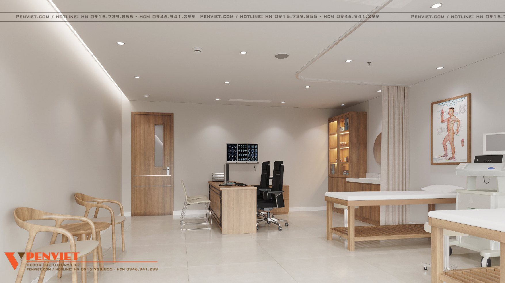 Đây là nơi bác sĩ sẽ khám tổng quát cho bệnh nhân, vì thế, đồ nội thất và trang thiết bị đặc trưng của lĩnh vực được bố trí đầy đủ, đáp ứng được mọi nhu cầu trong không gian khép kín.