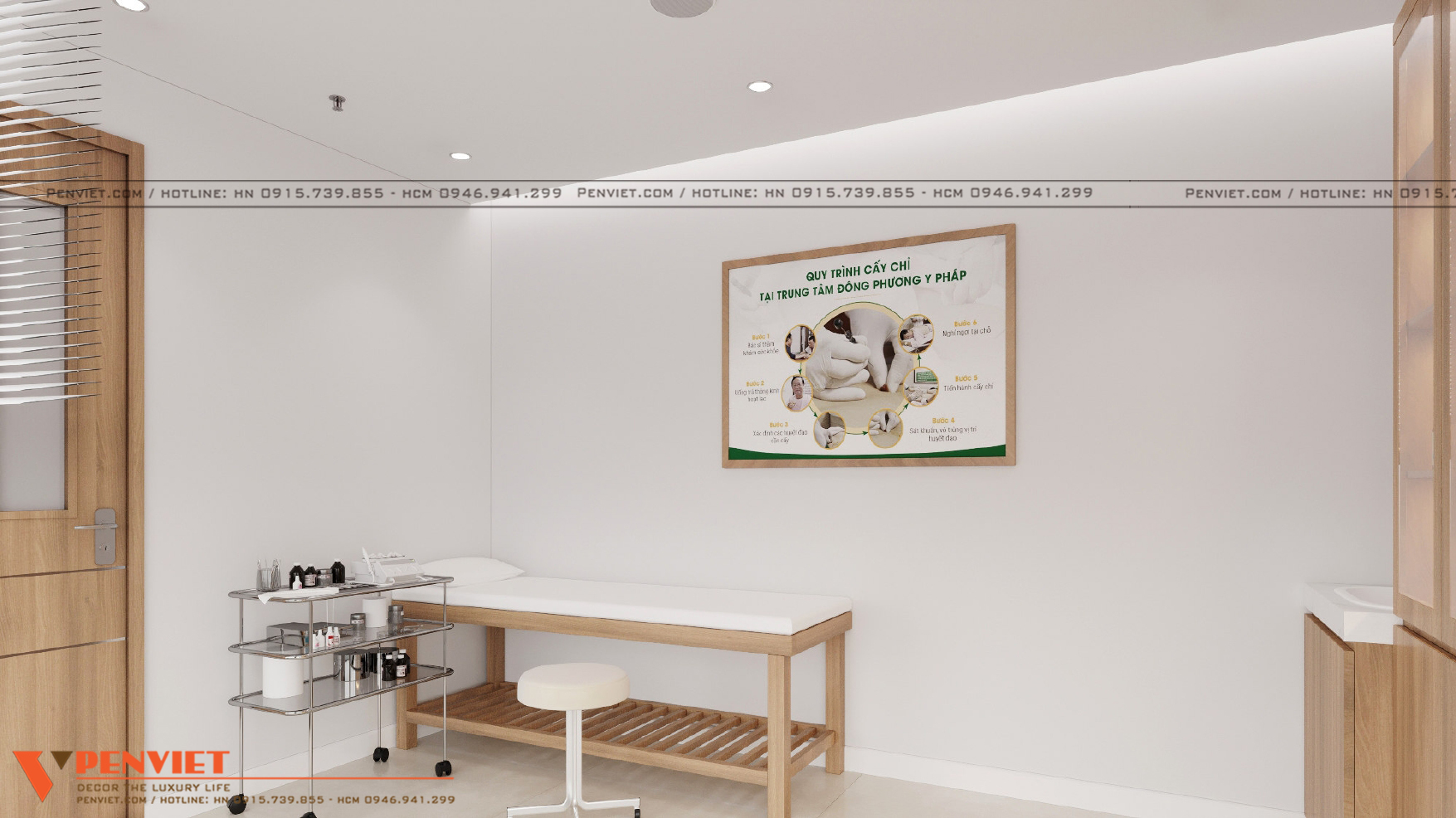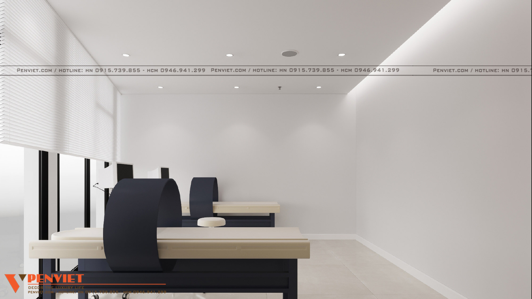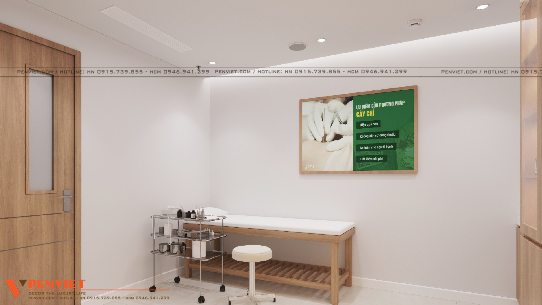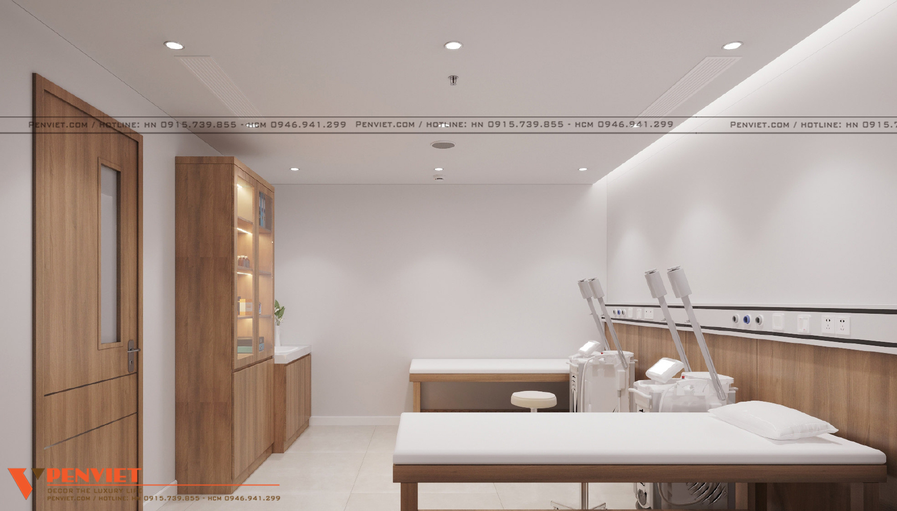Penviet sử dụng giường trị liệu và ghế ngồi cho nhân viên khung gỗ kết hợp đệm mang lại sự thoải mái cho người dùng. Ngăn cách giữa các giường trị liệu, chúng tôi sử dụng hệ rèm sáng vừa mang đến sự riêng tư vừa tạo nên hình ảnh chuyên nghiệp cho phòng điều trị.