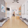 Khu vực phòng lễ tân là không gian chờ đợi của phòng khám mang đến những cảm nhận đầu tiên về phòng khám. Vì thế Penviet chú trọng thiết kế đảm bảo sự gần gũi và thoải mái cho người bệnh. Tại đây chúng tôi bố trí hai hệ ghế sofa dài bằng gỗ công nghiệp bọc nỉ êm ái đi cùng bàn trà nhỏ tạo sự gọn gàng.