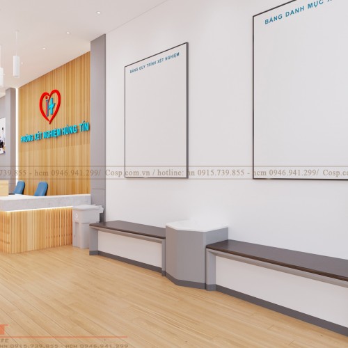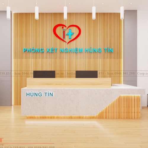 Thiết kế mặt tiền, phòng lễ tân phòng xét nghiệm Hùng Tín