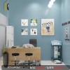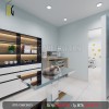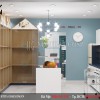 Ở cả 3 gian, kiến trúc sư đều lựa chọn màu sơn xanh nhạt rất dịu nhẹ, kết hợp cùng mặt sàn được lát gạch men trắng cao cấp tạo nên một sự tương phản vừa đủ.