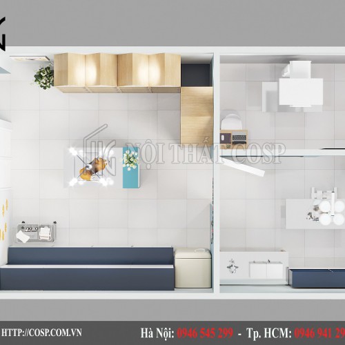 - Tông màu chủ đạo: Màu trắng - Màu Gỗ Và Xanh