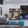 Không chỉ vậy, ở khu vực tiếp khách còn có một bộ ghế sofa màu xám ghi với thảm trải sàn màu xanh dương cực kì bắt mắt.
