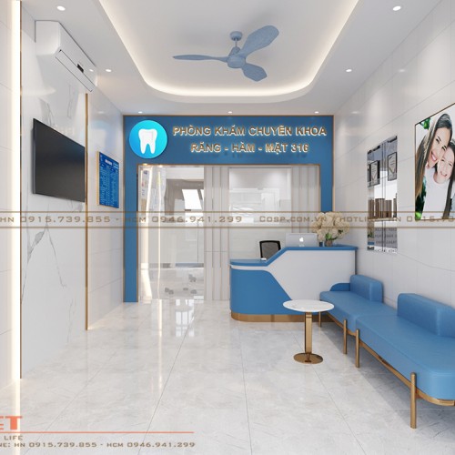 Thiết kế nội thất phòng khám chuyên khoa răng hàm mặt 316 mang phong cách hiện đại sang trọng. Màu sắc chủ đạo trắng, xanh theo tỷ lệ cân đối đảm bảo không gian khám chữa bệnh có sự hài hòa, tinh tế.