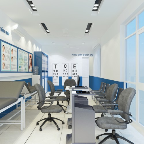 Phòng khám được thiết kế với hai bên là những chiếc ghế chờ của bệnh nhân ở tại đó phía bên tường là những poster về những cách bảo vệ mắt an toàn cũng nhưng thông tin hay mà phòng khám muốn dành cho bệnh nhân khi đến với phòng khám để có được một đôi mắt sáng và tốt nhất.
