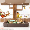 Tại khu vui chơi còn được bố trí hệ cây trang trí và ốp tường bằng gỗ MDF cốt xanh Thái Lan chống ẩm phủ melamine cắt CNC rất đẹp mắt. Tại đây, các bạn nhỏ được thỏa thích vui đùa cùng các đồ chơi nhỏ xinh ngộ nghĩnh trong lúc chờ đợi khám nha khoa.