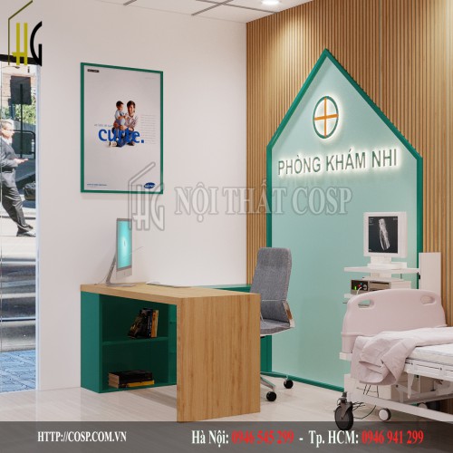 Đến với Công Ty Nội Thất Cosp, Anh Đoàn mong muốn có cho mình một không gian phòng khám nhi phù hợp với tiêu chuẩn y tế, hiện đại và tiện nghi, hơn hết phải gần gũi với trẻ nhỏ để tạo cảm giác thoải mái cho các bé khi tới khám tại đây.