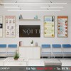 Đây đều là những màu sắc quen thuộc với nghành y tế, tươi sáng nhưng cũng không quá chói. Ngay tại không gian tiếp khách của phòng khám.