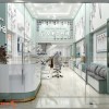 Ngoài ra, hệ thống ánh sáng cũng được chú trọng. Sự kết hợp giữa ánh sáng đèn led trần và đèn hắt sáng cùng với sự phản xạ, luân chuyển ánh sáng tuyệt vời từ hệ vách tường khiến không gian phòng khám nổi bật, bắt mắt hơn.
