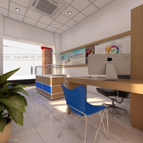 Bố cục không gian khoa học, thoáng kết hợp tông màu xanh trắng mang cảm giác thoải mái đã mang đến không gian chuyên nghiệp và cảm giác dễ chịu cho khách hàng khi ngồi chờ đợi.