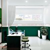 Để không gian phòng khám tạo được ấn tượng tốt trong lòng khách hàng, kiến trúc sư đã rất tinh tế trang trí nội thất hiện đại, tinh tế bằng cách sử dụng tông màu tươi sáng, bố trí nhiều cây xanh tươi mát.