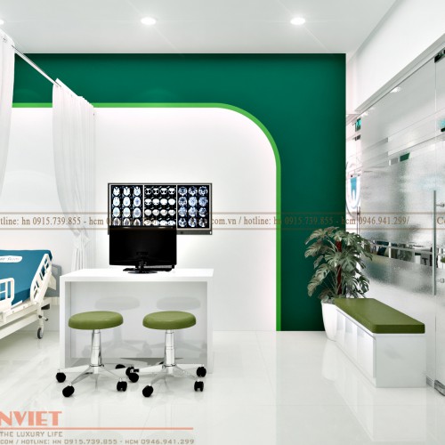 Thiết kế phòng khám tai mũi họng tận dụng nguồn ánh sáng tự nhiên lớn kết hợp với hệ thống ánh sáng lắp đặt khoa học để có thể tạo được sự thoải mái cho bệnh nhân.