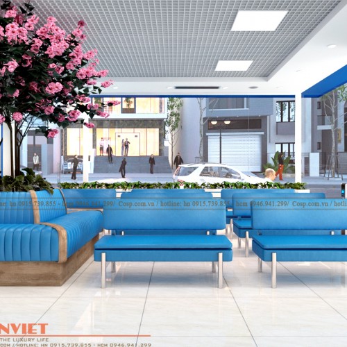Bố trí sắp đặt hệ ghế ngồi khoa học tạo lối đi thoải mái cho khách hàng và cũng tối ưu diện tích với nhiều ghế ngồi chờ cho khách hàng.