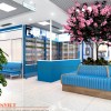 Thiết kế phòng khám đa khoa với nhiều dịch vụ thăm khám khác nhau, thì không thể thiếu quầy thuốc để bán thuốc cho khách hàng. Bố trí quầy thuốc với không gian mở liên kế chặt chẽ với phòng lễ tân.