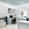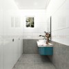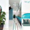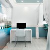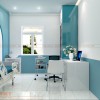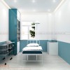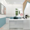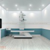 Vẫn là tông màu trắng và xanh chủ đạo của thiết kế phòng khám đa khoa, nhưng kiến trúc sư đã sử dụng màu trắng với tỉ lệ nhiều hơn để tạo hiệu ứng thị giác mang lại cảm giác rộng hơn so với diện tích thực.