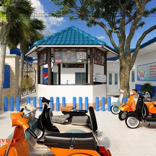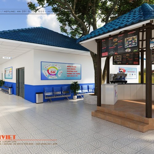 Khuôn viên phòng khám, kiến trúc sư tinh tế khi setup kiosk nước uống phục vụ cho người nhà bệnh nhân trong thời gian chờ đợi mệt mỏi.