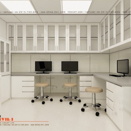Phòng khám tai mũi họng được Penviet bố trí các bàn làm việc bằng gỗ MDF chống ẩm phun sơn, giường bệnh chuyên dụng, tủ dụng cụ y tế có bánh xe di động giúp bác sĩ thuận tiên sử dụng khi thăm khám.