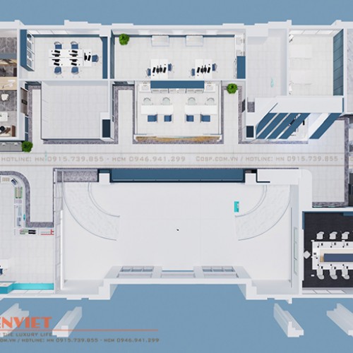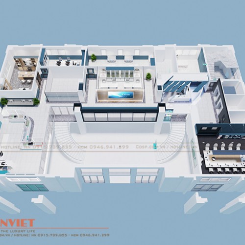 Chính vì thế, tại tầng lửng, Penviet bố trí phòng cấp cứu, quầy thuốc, phòng lấy máu, phòng xét nghiệm và các phòng quản lý như phòng giám đốc, kế toán để đảm bảo việc vận hành của cơ sở khám chữa bệnh.