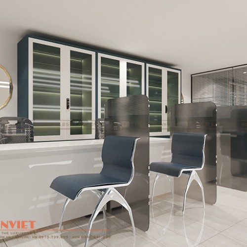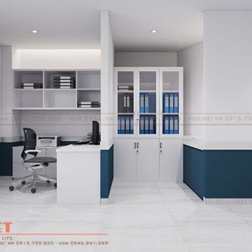 Để phù hợp với đặc điểm, chức năng của phòng kế toán, chúng tôi bố trí nhiều tủ đựng hồ sơ một cách khoa học, giúp tối ưu không gian lưu trữ cho phòng làm việc. Những mẫu tủ đứng, tủ treo tường được sử dụng linh hoạt để khu vực này luôn gọn gàng, ngăn nắp.