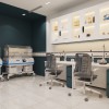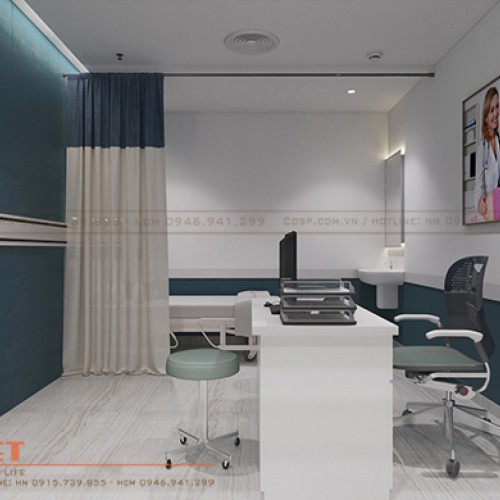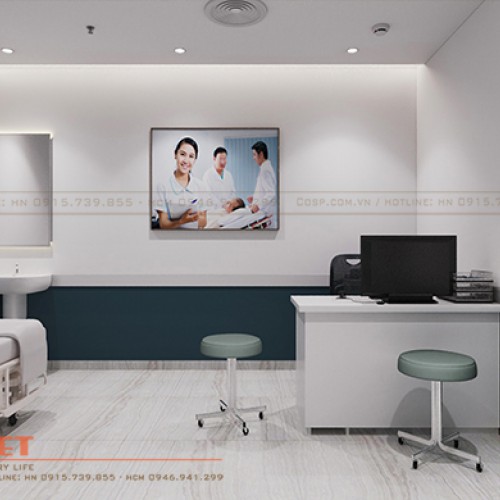 Sự hiện đại, chuyên nghiệp thể hiện qua cách sử dụng những sản phẩm nội thất đồng bộ, đem đến sự nhất quán cho không gian khám chữa bệnh.