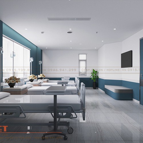 Theo đó, để đáp ứng được điều kiện này, Penviet dành diện tích 25m2 cho buồng lưu trú với 4 giường bệnh trong mẫu thiết kế phòng khám đa khoa Thượng Lý nhằm đảm bảo chất lượng công tác khám chữa bệnh.