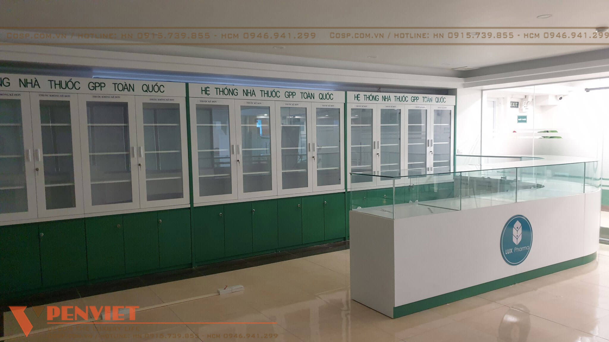 Nhằm phát huy thế mạnh về các sản phẩm dược, thúc đẩy việc bán hàng cho chủ đầu tư, cũng như phục vụ cho việc khám chữa bệnh của phòng khám, Penviet ưu tiên sử dụng một diện tích tương đối lớn ở vị trí thuận lợi trong mặt bằng để bố trí quầy thuốc.