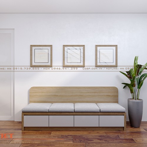 Bên góc trái là dãy ghế ngồi chờ của khách hàng khi đến với phòng khám bác sĩ Nghĩa. Ghế ngồi làm từ khung gỗ tự nhiên kết hợp gỗ tổng hợp bọc nỉ êm ái, tạo sự thoải mái khi sử dụng.