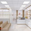 Quầy thu ngân của tầng 1 phòng khám mắt bác sĩ Nghĩa là nơi tiếp đón, tư vấn khách hàng. Mẫu quầy thu ngân này được làm từ gỗ MDF cốt xanh Thái Lan sơn màu trắng đồng bộ nội thất phòng khám. Phía sau quầy thu ngân là vách gỗ MDF có dán bộ logo, tên thương hiệu chân mica phát sáng làm tăng độ nhận diện trong mắt khách hàng.