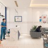 KTS thiết kế phòng khám nha khoa với phong cách hiện đại sử dụng 2 tông màu chủ đạo là: màu trắng và màu xanh. Hai tông màu này vừa giúp tối ưu không gian vừa tạo cảm giác thoải mái cho người bệnh khi đến phòng khám.