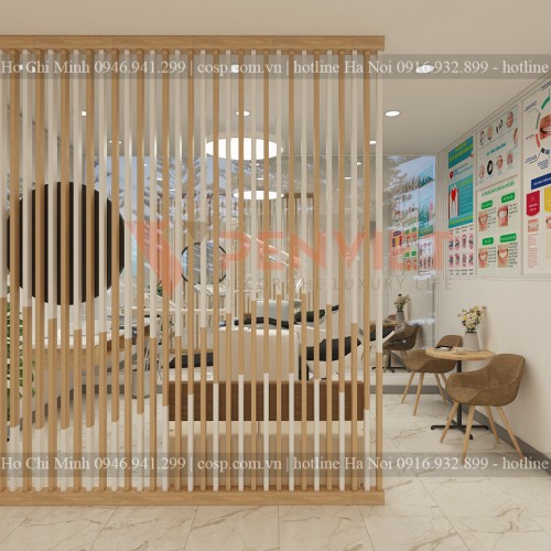 Nhằm ngăn cách không gian và tạo cảm giác riêng tư một vách ngăn gỗ đã được sử dụng. Bức vách ngăn được sử dụng thiết kế thông thoáng để không gian vẫn giữ được độ thông thoáng và giúp tạo tâm lý không lo lắng cho những bệnh nhân để cảm họ không có cảm giác lo âu.