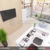 Về phần bên ngoài, khu vực chờ của khách được đặt một ghế sofa dài màu xanh xám cùng với bàn kính nhỏ hình pha lê trang nhã. Tiếp đó là quầy lễ tân được sơn trắng và chân viền màu xanh cùng với logo,biển hiệu của phòng khám ở bên trên. Đối diện là bức tường treo tivi được lát gỗ melamine vân sọc tô điểm thêm cho sự văn minh, lịch sự của phòng khám.