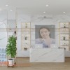 Chúng tôi khéo léo tăng cường nhận diện thương hiệu cho mẫu phòng khám nhờ việc setup vách backdrop khung thạch cao kết hợp đèn led dây hắt viền tôn lên logo và tên cơ sở y tế làm từ Mica phát sáng.